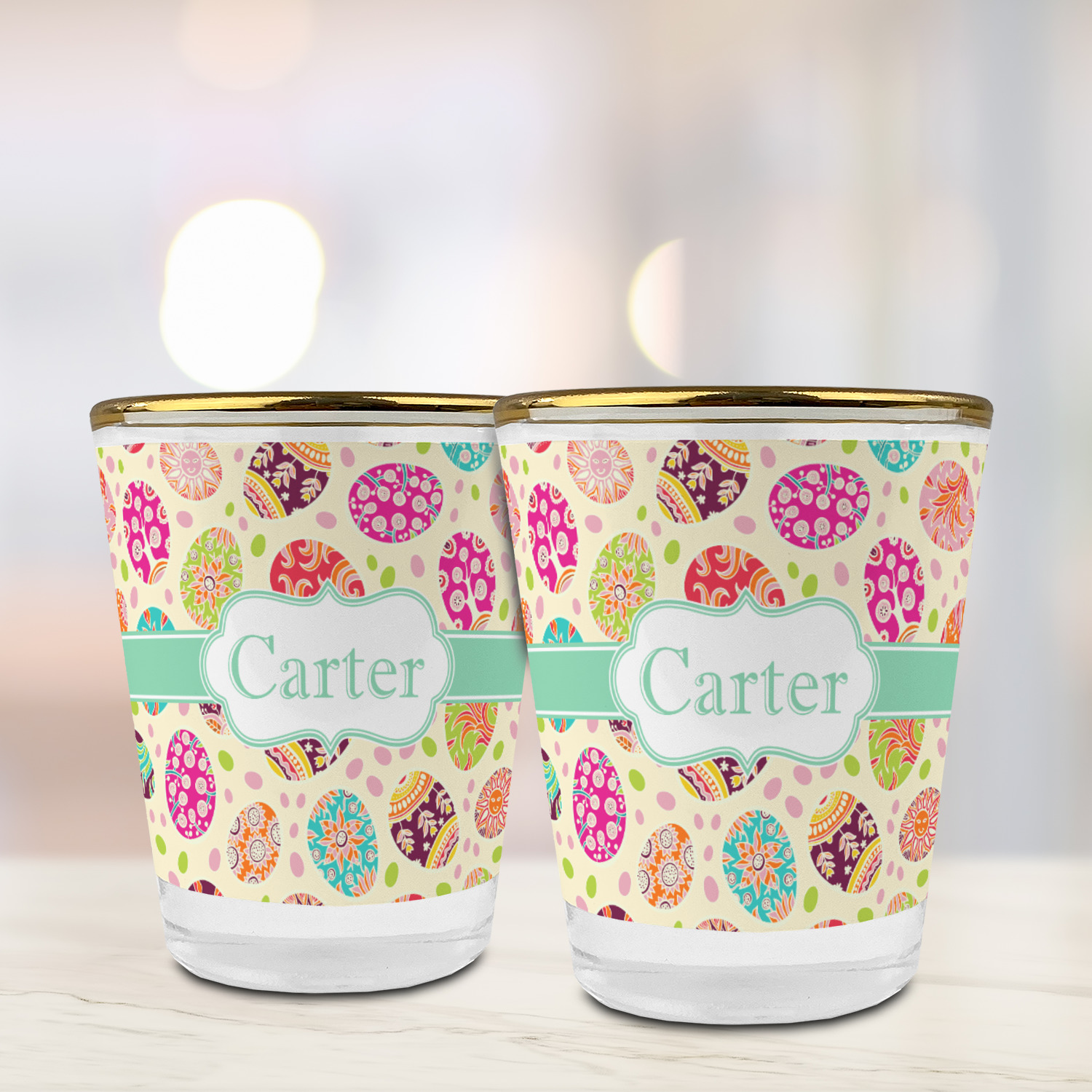 Made with frosted glass, these shot glasses are printed in full color with the design of your choice. They are a standard 1.5oz shot glass and are 2.4" tall. The print is wrapped around the shot glass in a full wrap and boldly displays your customization.