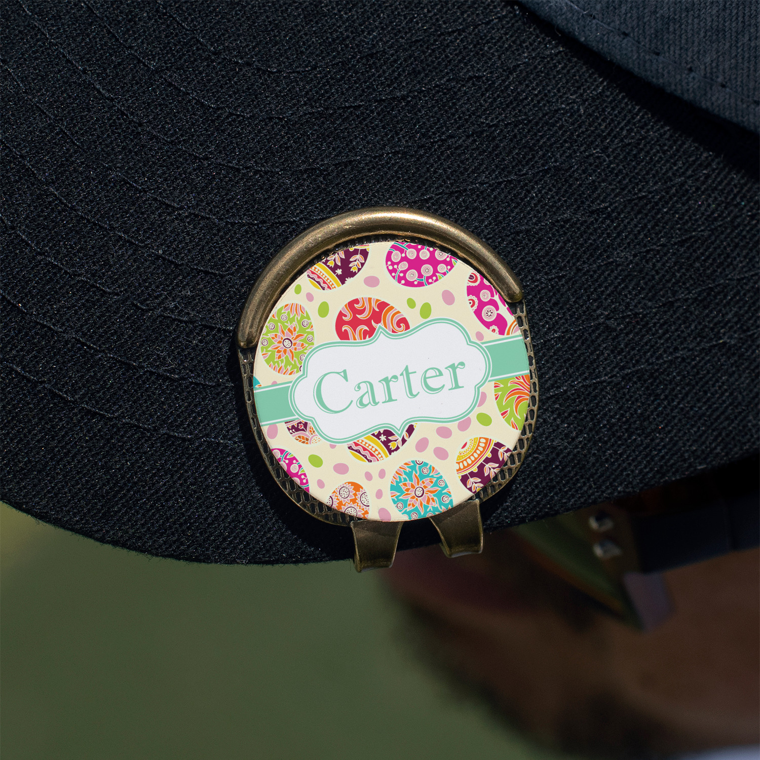 This round shaped little clip is simply 1.25" x 1.5". A clip wraps around to the back of the ball marker holder in order to be able to clip it to the bill of your hat or even your belt. The metal ball marker attaches by a magnet on the clip. Available in stainless steel natural finish or gold finish, you are sure to find one to suit your style. This makes for convenient removal when you need to use it. No more digging in your bag or pockets trying to find it!