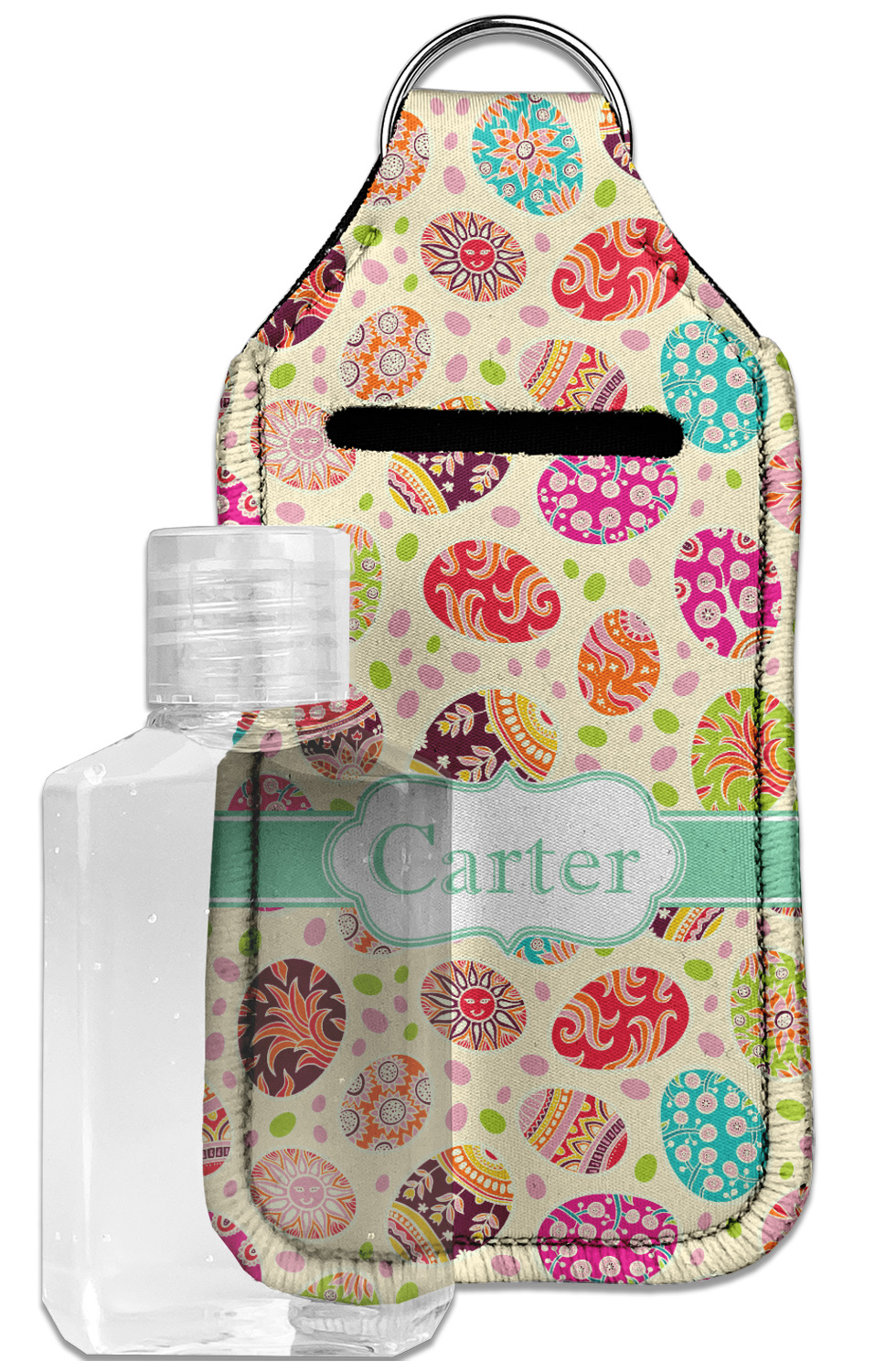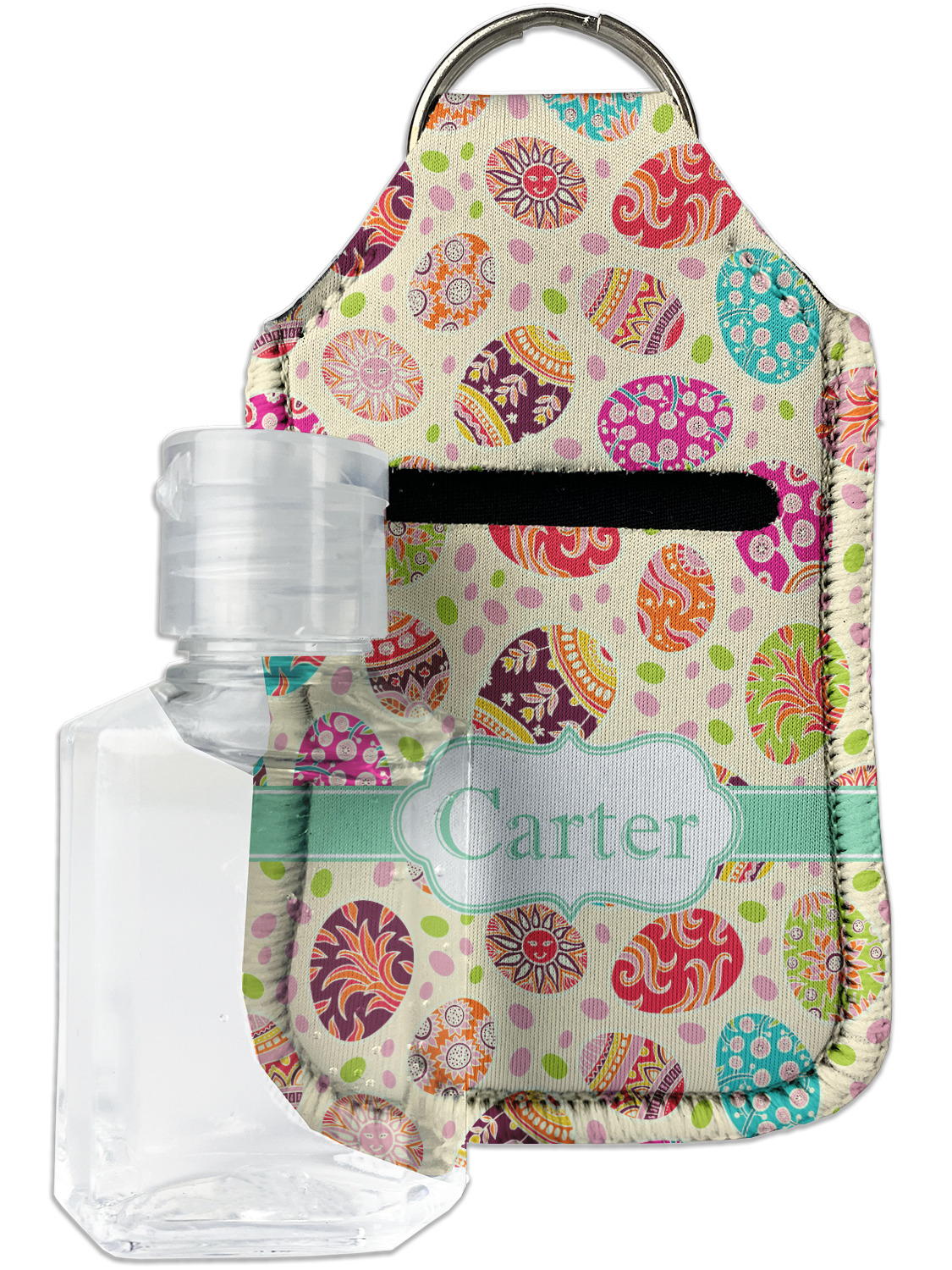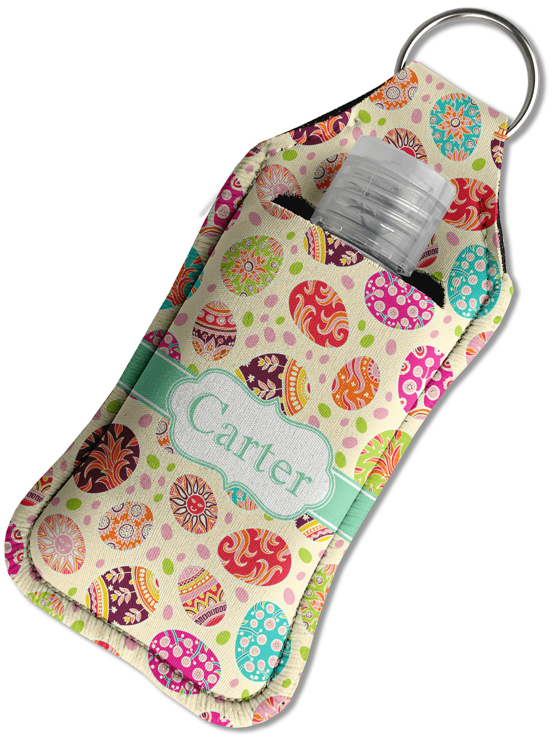 Each hand sanitizer holder comes with its own empty travel-sized, refillable hand sanitizer sure to fit snug in your customized sanitizer case! Our hand sanitizer cases are a durable, yet soft neoprene material sure to last any daily activities or travel agenda. Customize and personalize a hand sanitizer bottle holder with one of our two sizes - small (4.25" x 2.25") or large (5.5" x 2.5"). Each travel sanitizer holder comes with a keyring for attachment on bags, keys, or more!