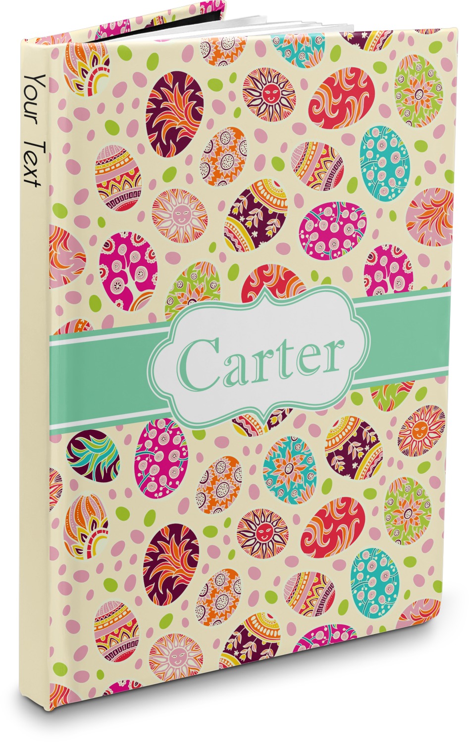 The hardcover of this personalized journal is covered with a smooth, matte, laminate coating. The unique laminate of the covers gives the hardcover notebook a smooth, sleek feel. Filled with 75, lined, white pages, this hardbound notebook has enough room for your reminders and notes. For your convenience, the pages have been perforated, which guarantees an easy tear and removal. Your customization is printed across the entire cover of the book, while the interior is black in color.