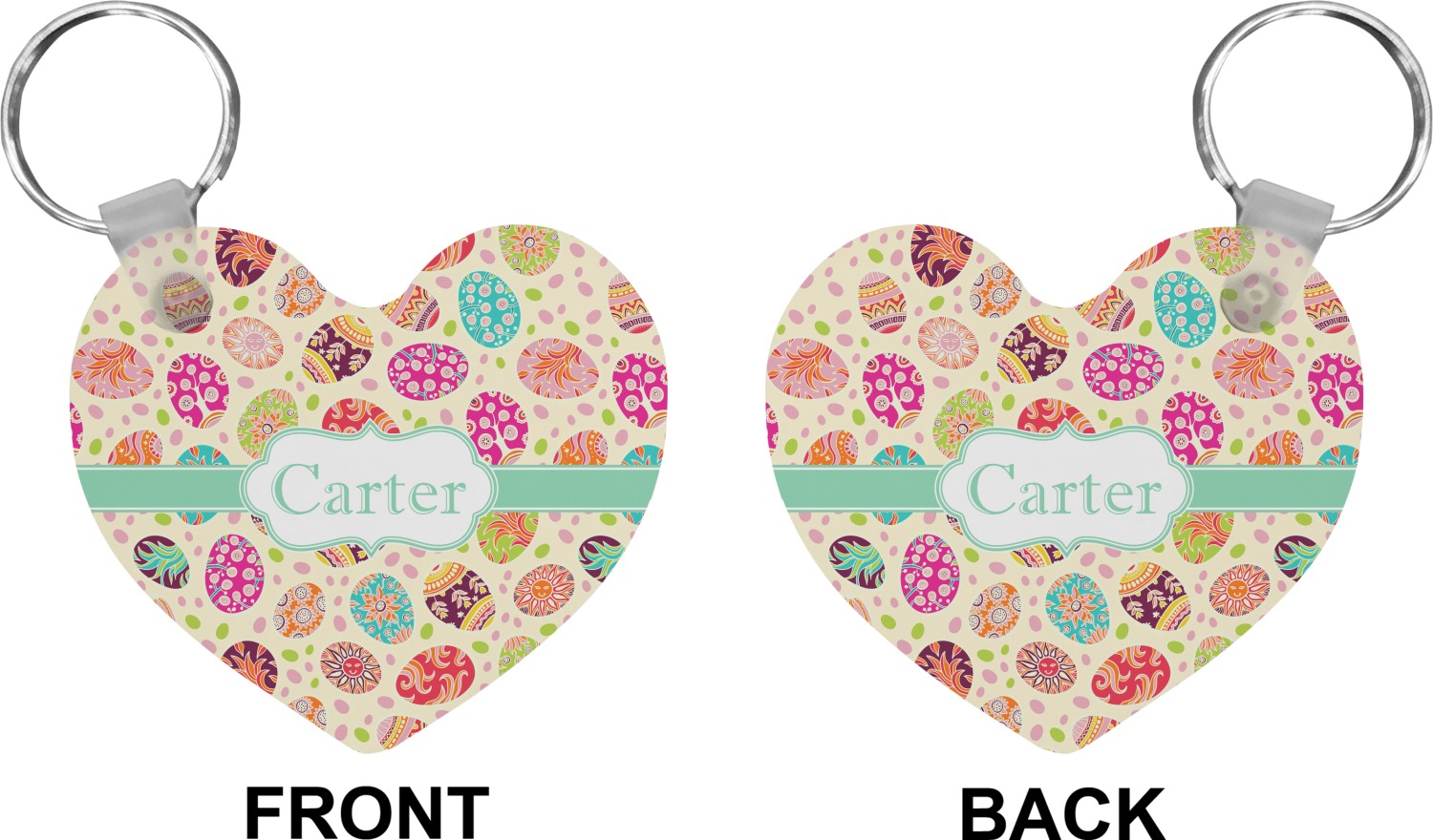 Our personalized keychains attach to the included metal, split key ring with a plastic, removable snap. Since a metal ring is included with your purchase, you have the liberty to keep your keys together on the ring, with or without your unique keychain. We offer this keychain in three different shapes: circle, heart, or diamond. We print your personalized design(s) on both sides of the key chain, and the surface has a glossy, reflective finish that only emphasizes your design. Each keychain is approximately 2.25 by 2.25 inches.