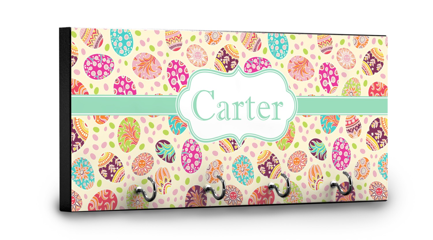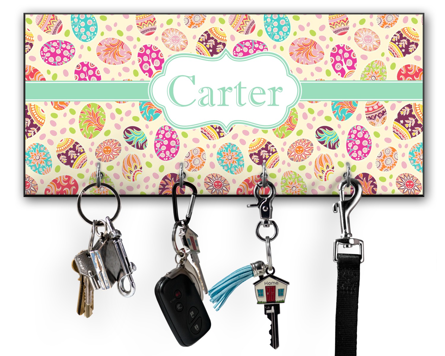 This 11" x 5" key hanger is made of sturdy wood and has four metal hooks lining the bottom. This is the perfect size for a family with several drivers. Not only can you hang keys on it though, but pet leashes and other small items. The board is black on the sides and back and is printed with the design of your choice on the front.