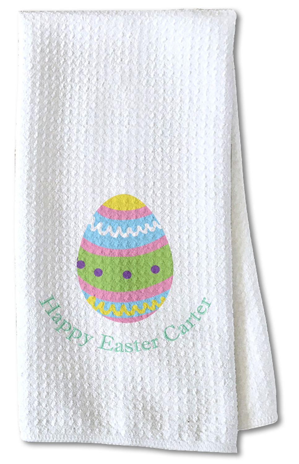 Each waffle weave kitchen towel is approximately 16 x 24 inches with your design printed on one side and the back is white.