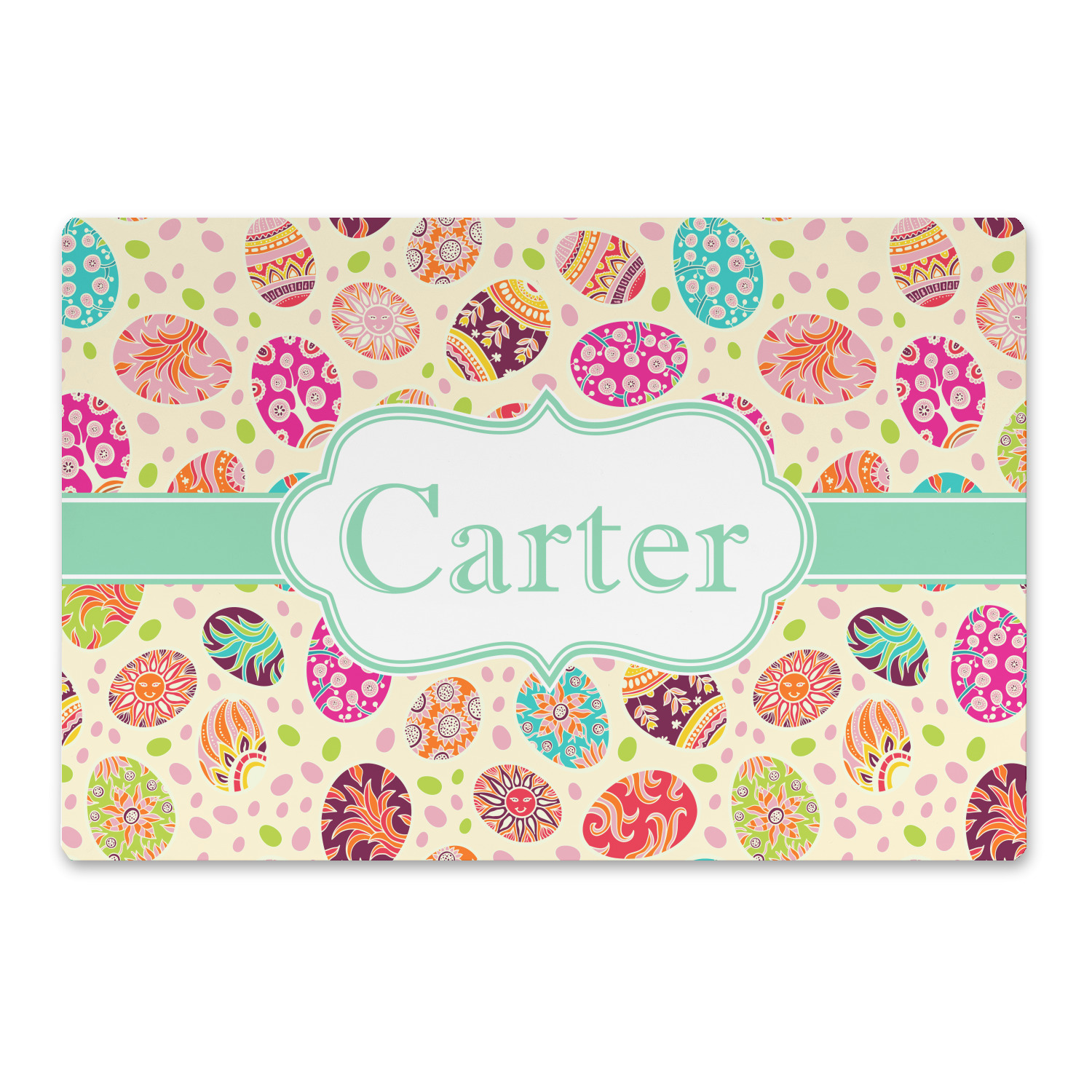 Celebrate Easter with this graphic and whimsical design! Featured in the design are multicolored, patterned Easter eggs and pink and green jelly beans on a cream background.