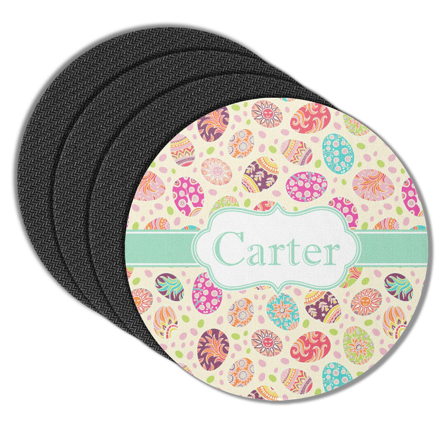 These drink coasters have a smooth, polyester top and a textured, rubber backing on its bottom. The non-slip rubber backing underneath works to keep any spills at bay. At 4 by 4 by 0.25 inches thick, these custom coasters are a suitable size for most drinkware. Your personalization is displayed atop the face of the cup coaster. We sell these rubber coasters in two different shapes: square and round. You can buy each shape as singulars or as a set of 4.