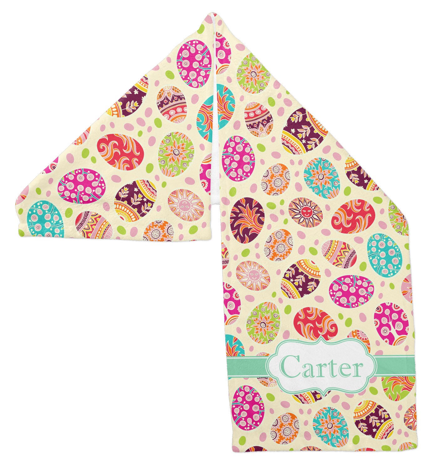 Celebrate Easter with this graphic and whimsical design! Featured in the design are multicolored, patterned Easter eggs and pink and green jelly beans on a cream background.
