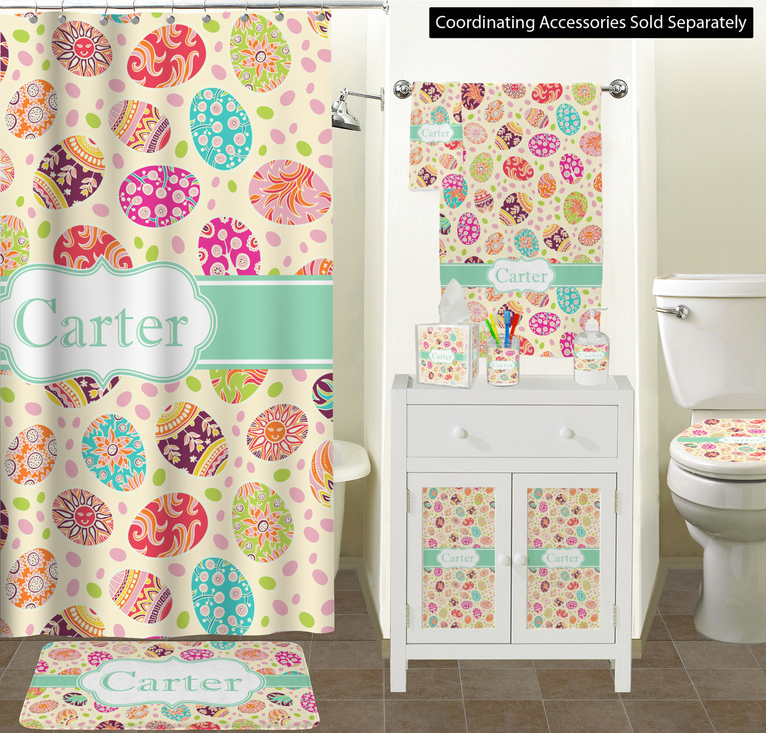 Celebrate Easter with this graphic and whimsical design! Featured in the design are multicolored, patterned Easter eggs and pink and green jelly beans on a cream background.