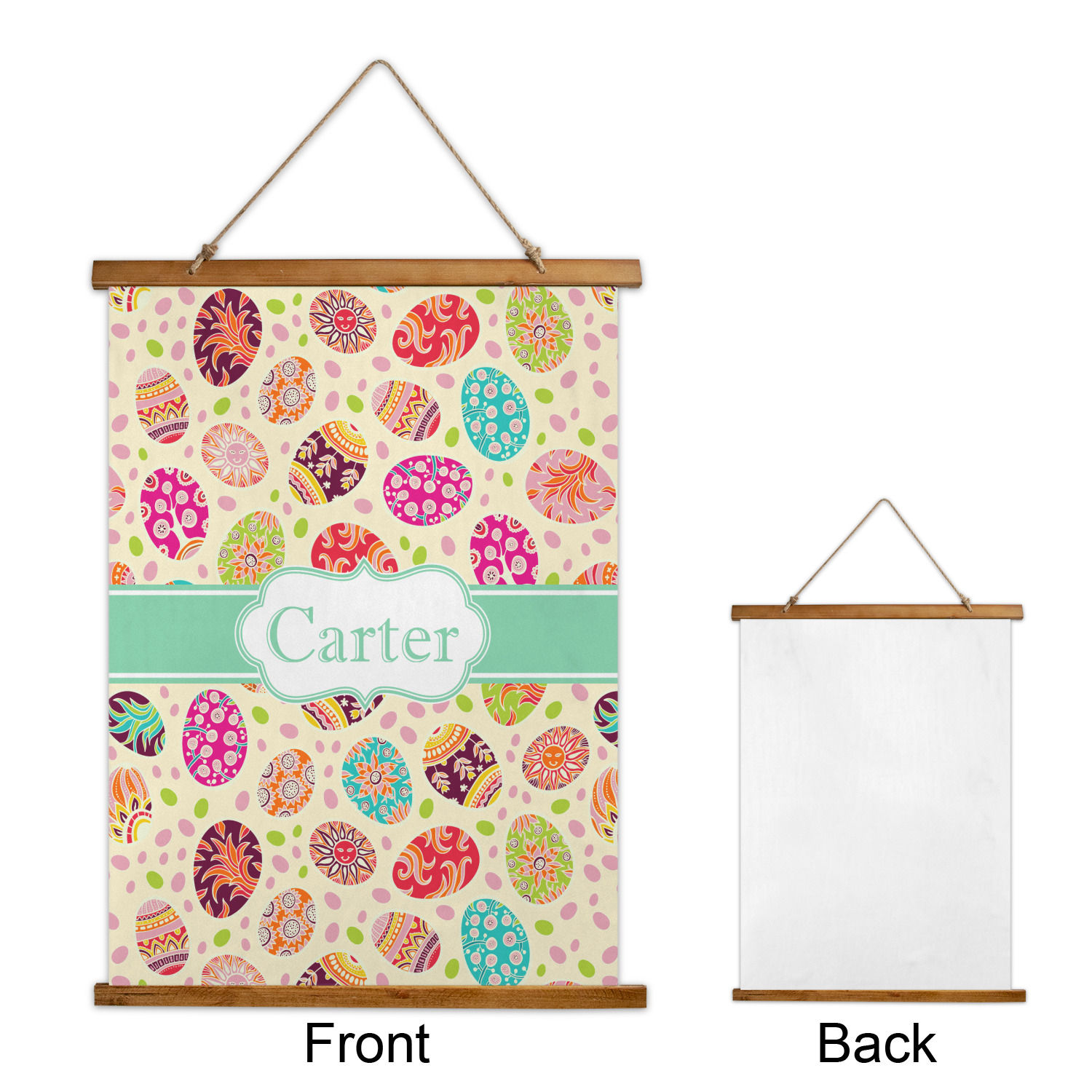 Made in two different orientations - portrait or landscape - both are 26" x 36". Your design is printed on a high quality polyester fabric with hemmed edges. The wood on the top and bottom of the tapestry is 1.25" tall and 0.25" thick and there are two pieces on top and bottom which sandwich the fabric.