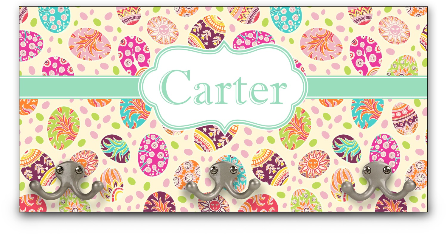 This coat rack is the perfect way to add some personality to your wall or entryway. The board is made of a strong maple that is approximately 16" x 8". The three 2-prong hooks are a sturdy metal that have three screws attaching them to the board. Your design is printed right onto the front of the board while the back and sides are a simple black.