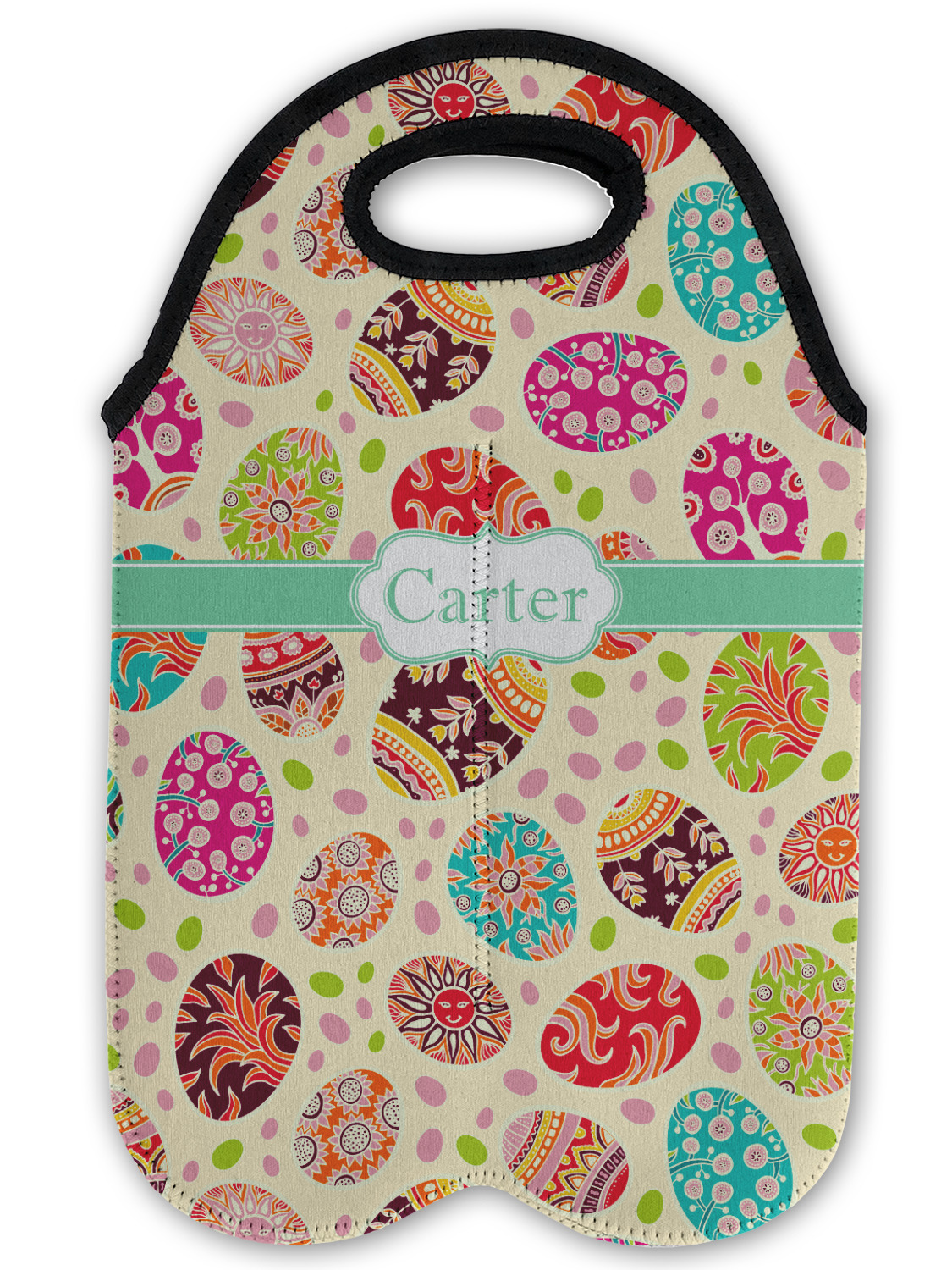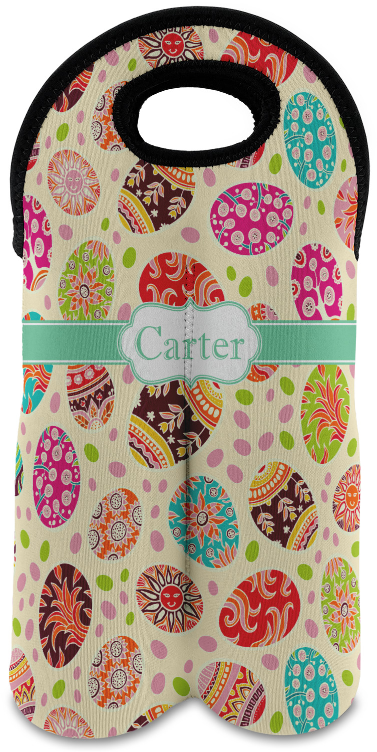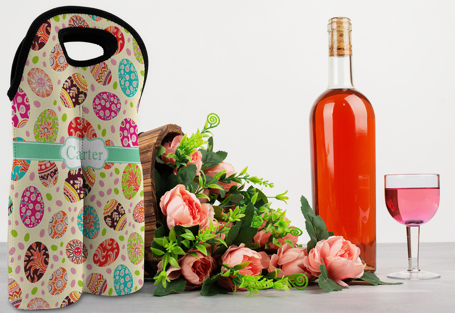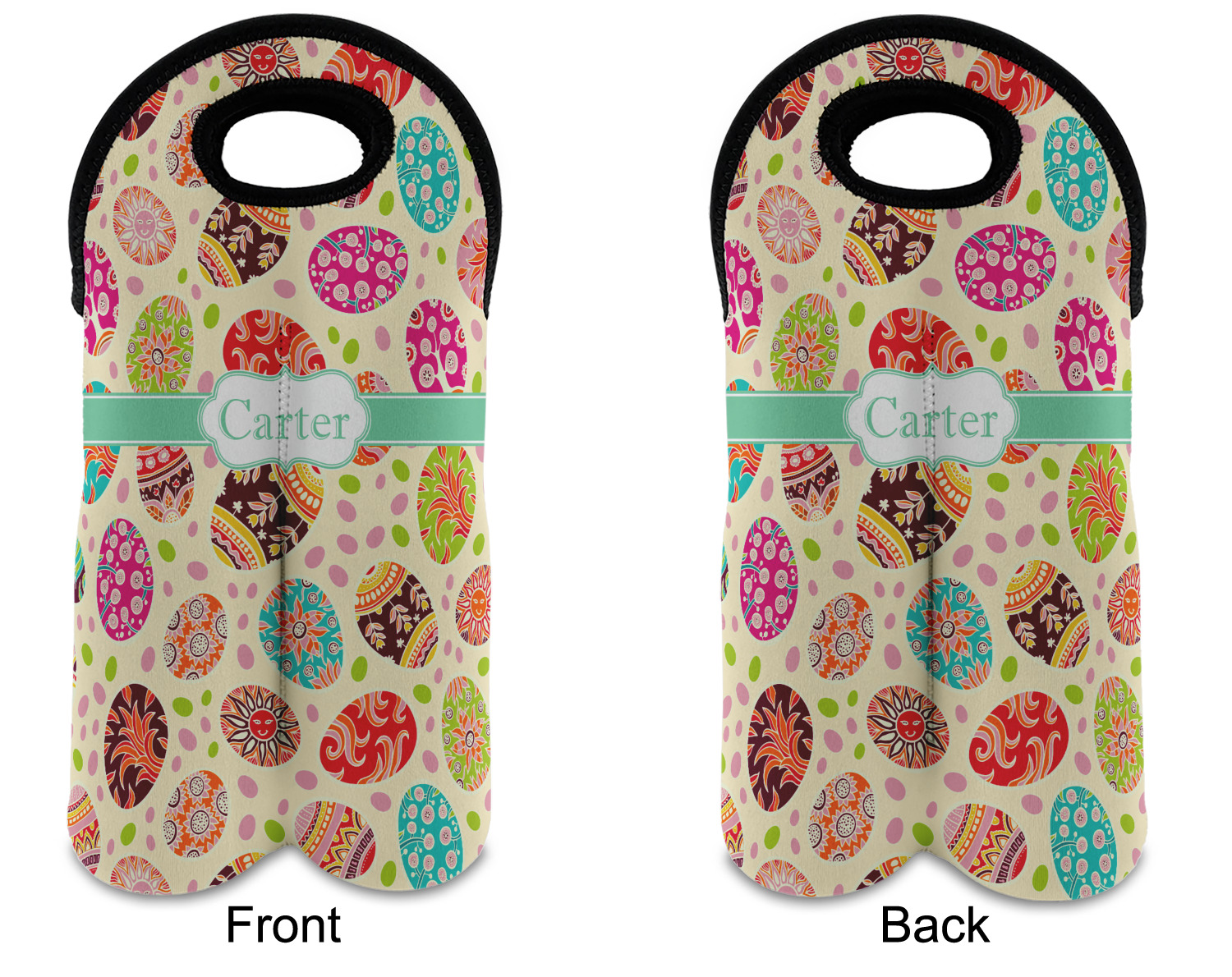 These tote bags are insulated to keep the bottles cold and have a stitched separation down the middle and double handles to keep the two bottles safe and secure during travels.