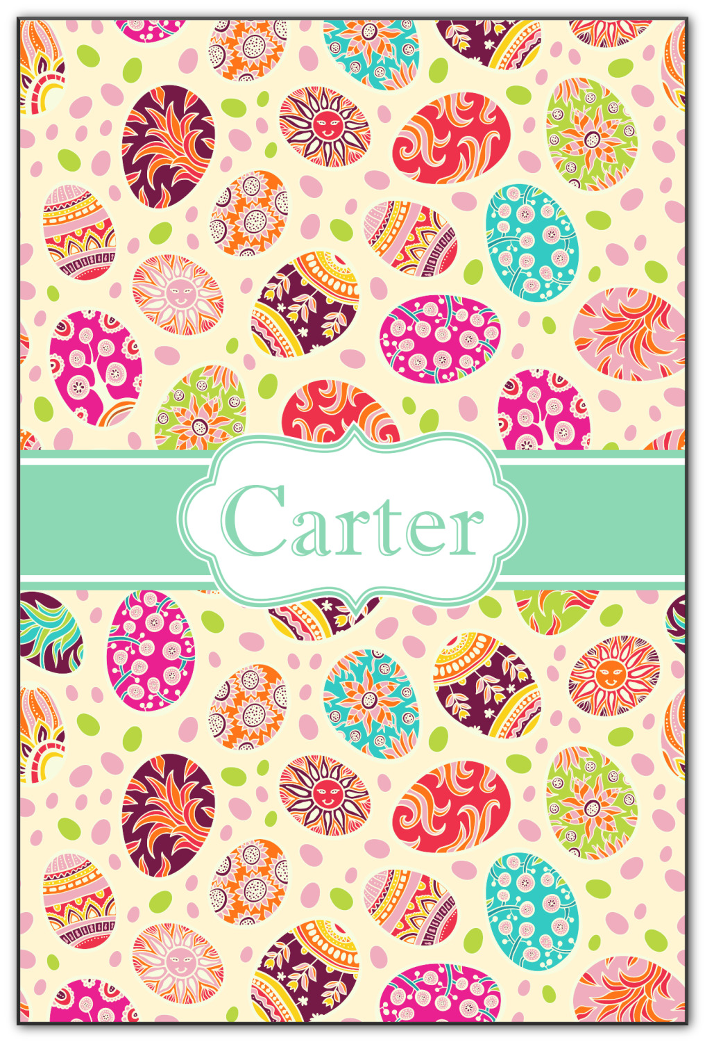 Celebrate Easter with this graphic and whimsical design! Featured in the design are multicolored, patterned Easter eggs and pink and green jelly beans on a cream background.