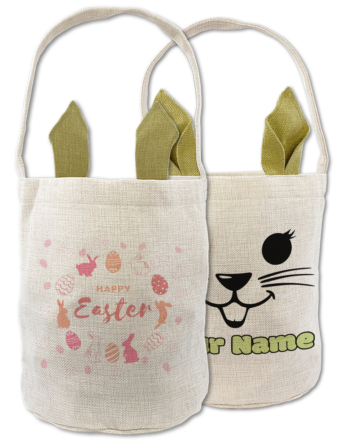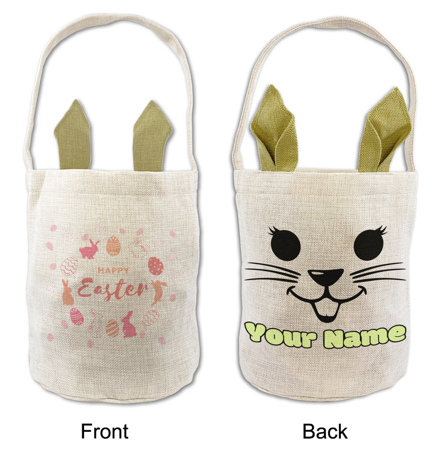Our baskets comes with two cute bunny ears and customizable bunny faces with your name easily added to the design. You also have the option of adding another image or photo to the other side of the basket for even more color and design options.