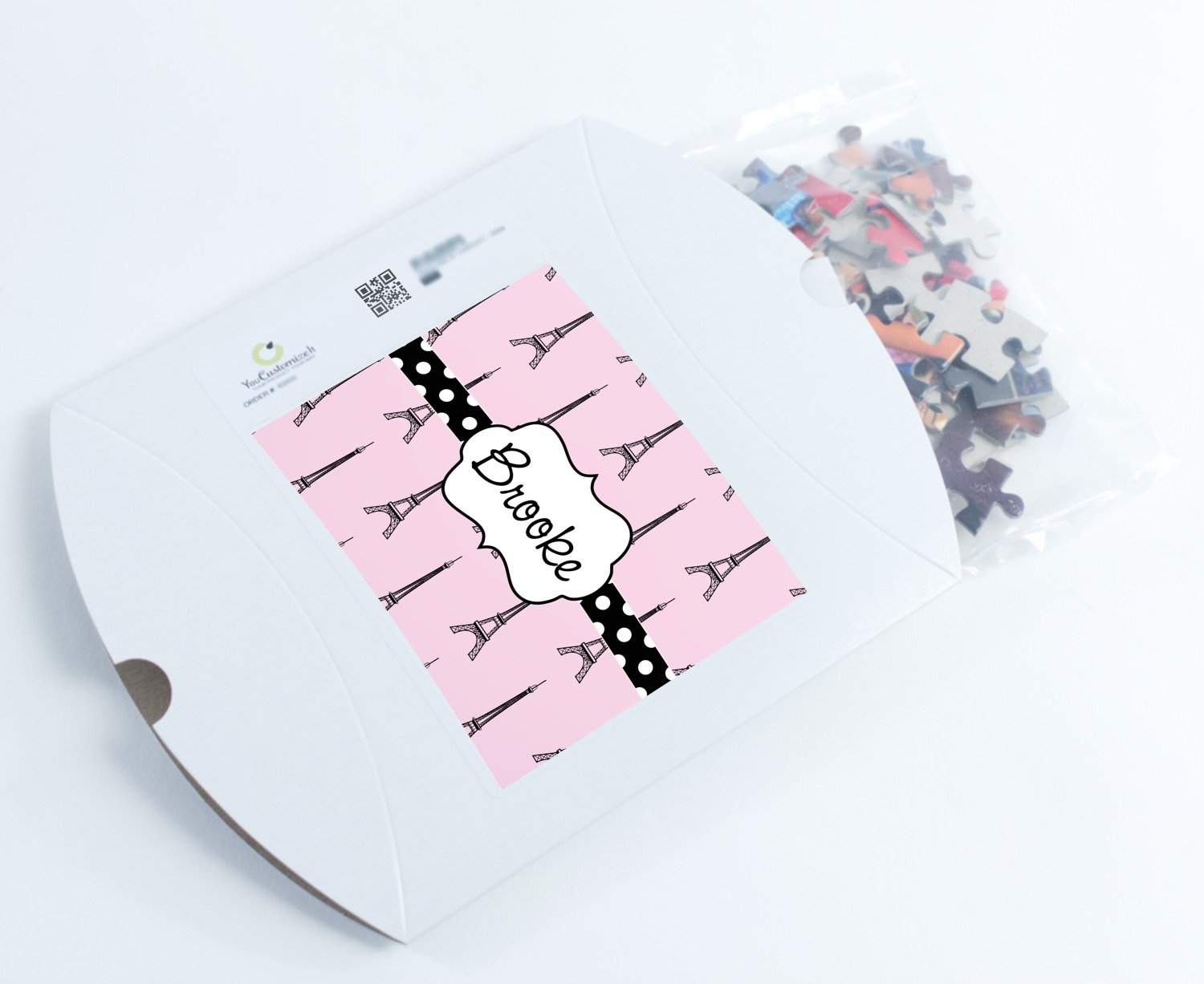 We print our puzzles on thick white chipboard in vibrant colors, then laminate the chipboard and die cut your puzzle. Your jigsaw puzzle is shipped to you in a box with the image of the puzzle on the box.