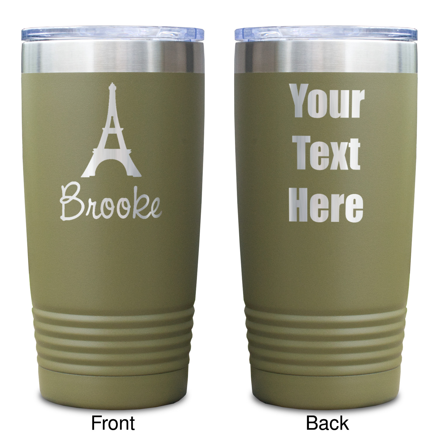 Available in 8 unique colors, these cups are crafted from 18/8 stainless steel and powder coated for their durable finish. With the 8 colors being Black, Pink, Red, Teal, White, Grey, Royal Blue, and Olive Green, you are sure to find a cup to fit your personality. You can chose to engrave on the front or the front and back of the cup. Use our design studio to design your own cup and we laser engrave it for you.