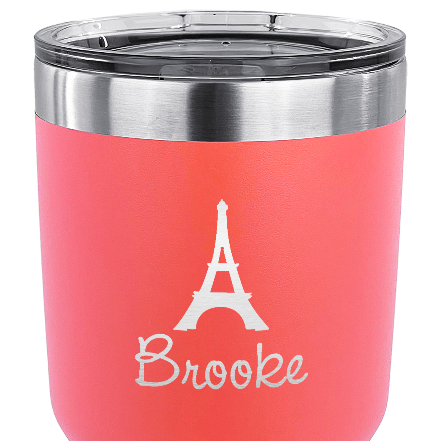 With the 5 colors - Black, Navy, Red, Pink and Coral, you are sure to find a cup to fit your personality. You can chose to engrave on the front or the front and back of the cup. Use our design studio to design your own cup and we laser engrave it for you.