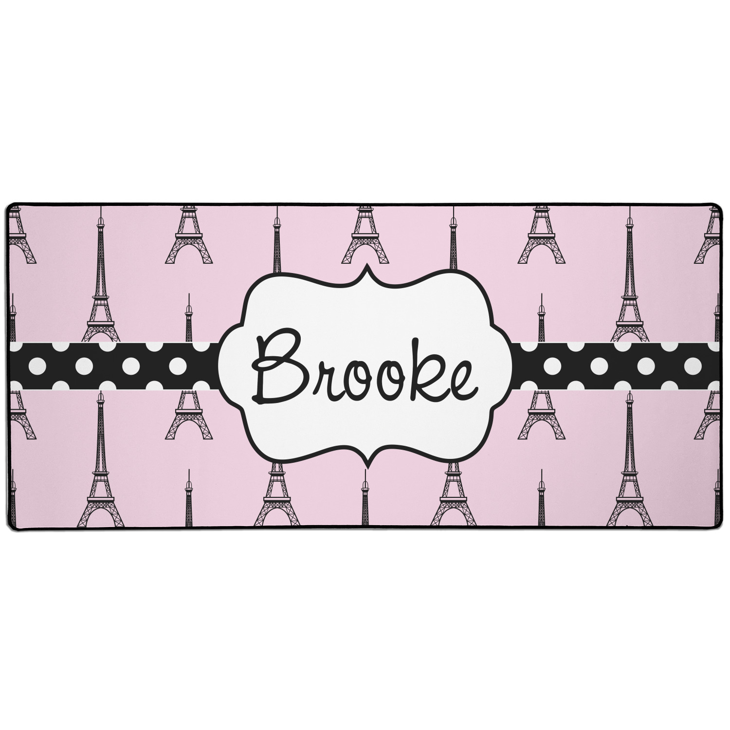 A wide black and white polka dot band adds a touch of French whimsy. The beautiful label highlights the personalization of your choice.