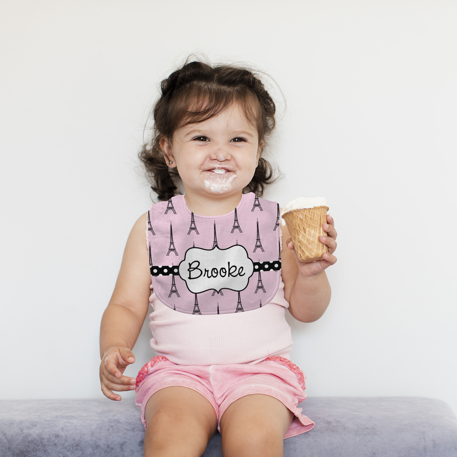 Combine this toddler bib with a variety of our other baby products, such as burp cloths, baby blankets, and baby onesies, to make a delightful baby shower gift! Or, browse from our selection of products in our Baby and Toddler section for more gifts for your own child! Customize some kid's cutlery, snack containers, or a sippy cup to make mealtime more enjoyable!