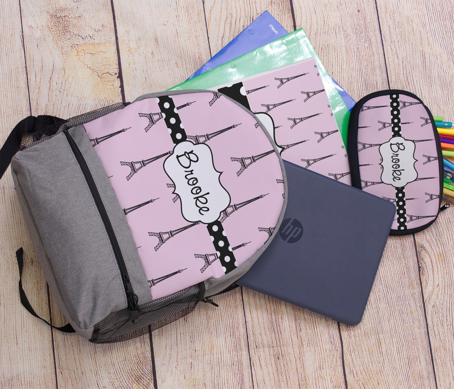 A wide black and white polka dot band adds a touch of French whimsy. The beautiful label highlights the personalization of your choice.