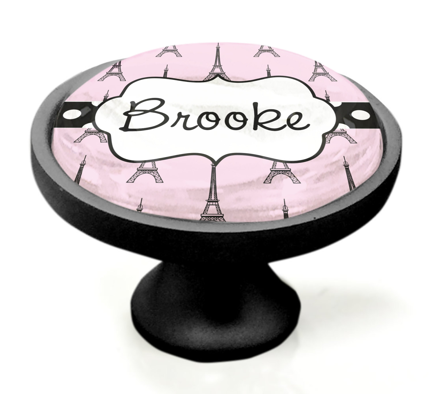 We sell these cabinet pulls in two different colors to better match your room's color scheme. We offer an oil-rubbed bronze base that is black in color, and a satin nickel option, which has a silver color. Your design is displayed across a high gloss vinyl insert that is placed on top of these cabinet handles. We then place a 1 inch thick glass cabochon atop the design, which seals the cabinet knob and makes the colors of your customization stand out. These custom cabinet knobs are approximately 1.3 inches in diameter. Your purchase includes a 1 inch screw that can be used to mount the knob to any cabinet in your home.