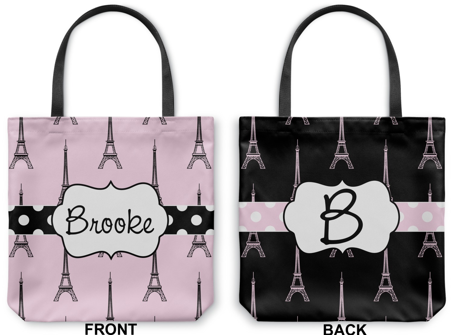Our totes are made right here in the USA. Your design is printed on canvas fabric; the fabric is then cut and sewn on the sides and on the bottom to add an approximately 3.5 inch gusset. Black cotton handles are sewn in and reinforced. Your tote has a designs on both sides - the designs can be the same or different - the choice is yours. The inside of the tote has a black fused lining.