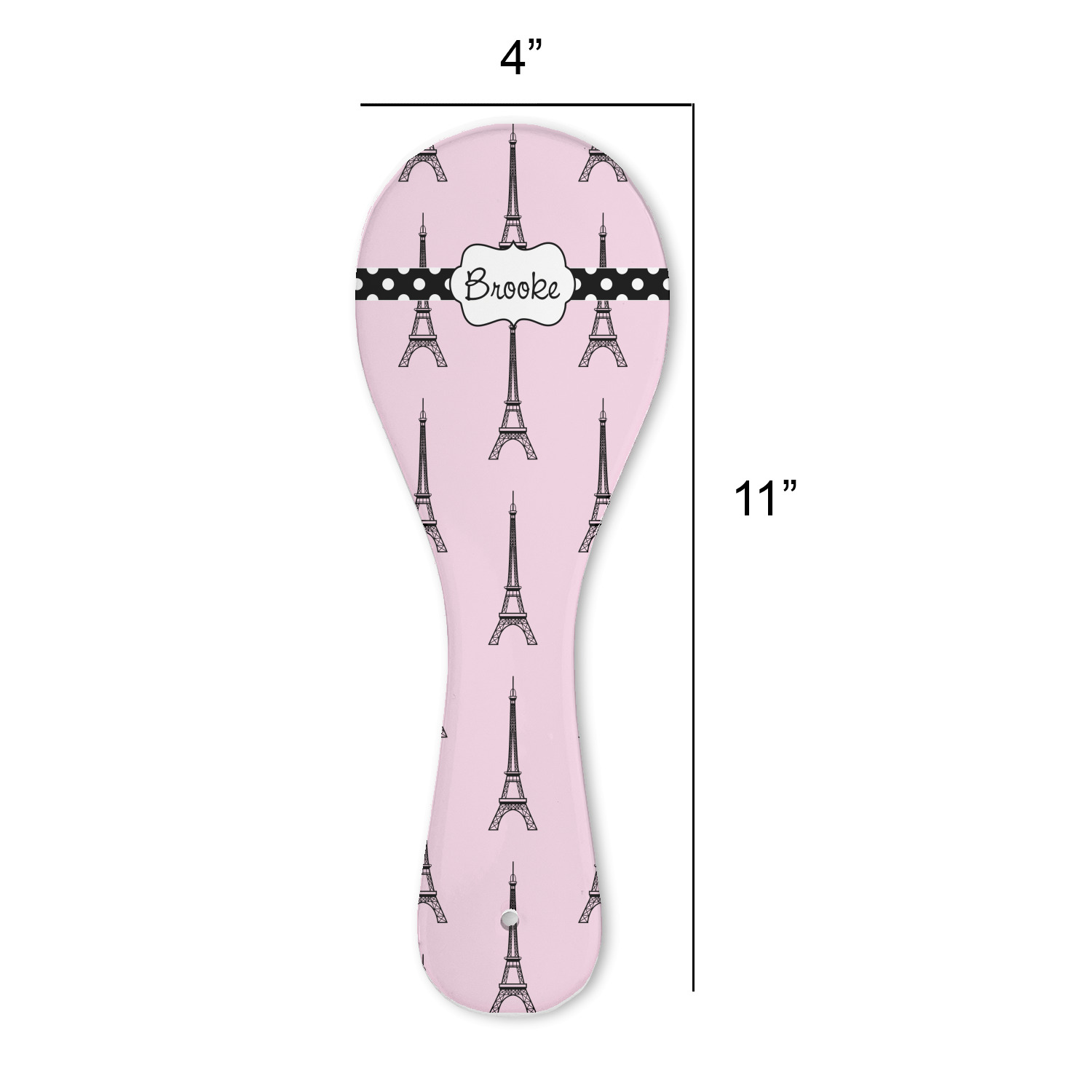 Made from a durable ceramic with a raised foot backer, these spoon rests are 11" long, 4" wide at the spoon section - 2.25" wide at the handle, and stand 0.375" tall. The spoon rest end has a slightly dished out area to ensure any items spilled on it do not run off. On the handle there is a hole in case you want to use it as a decoration in your kitchen it is easy to place on the wall.