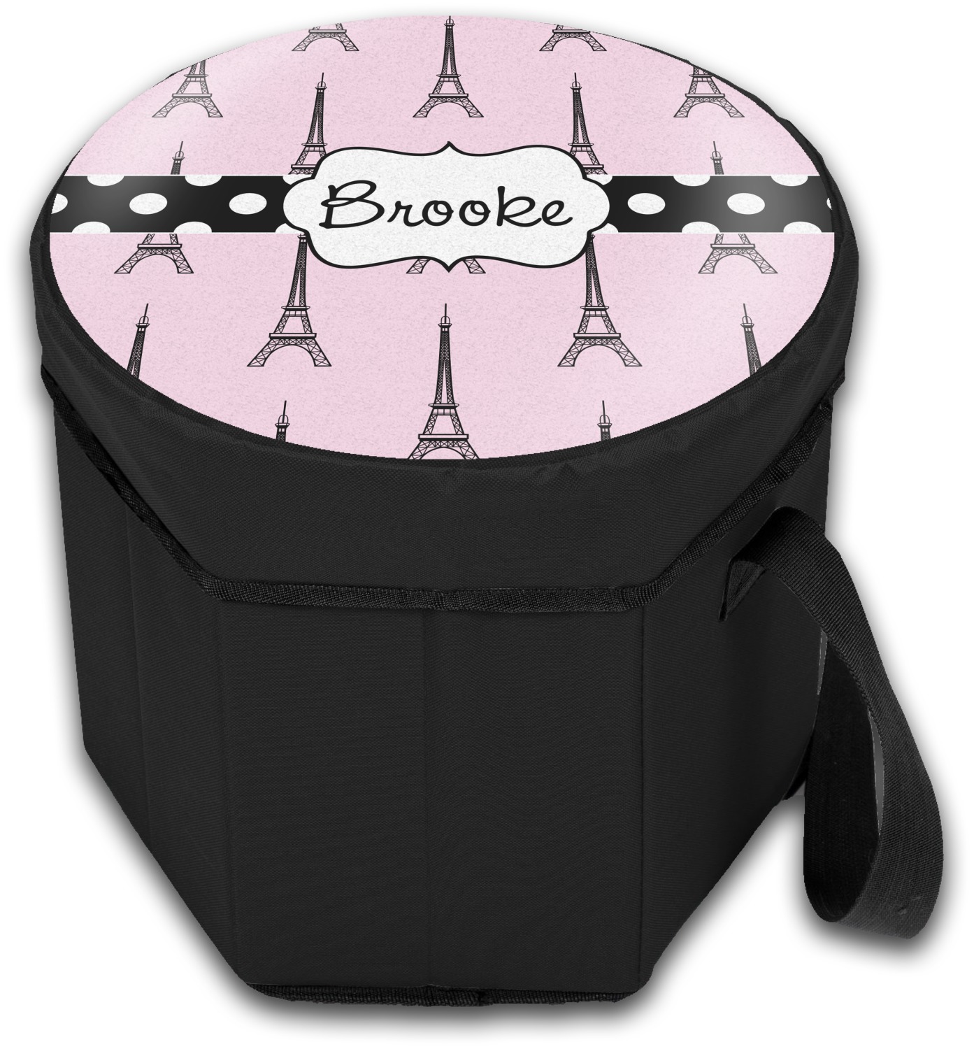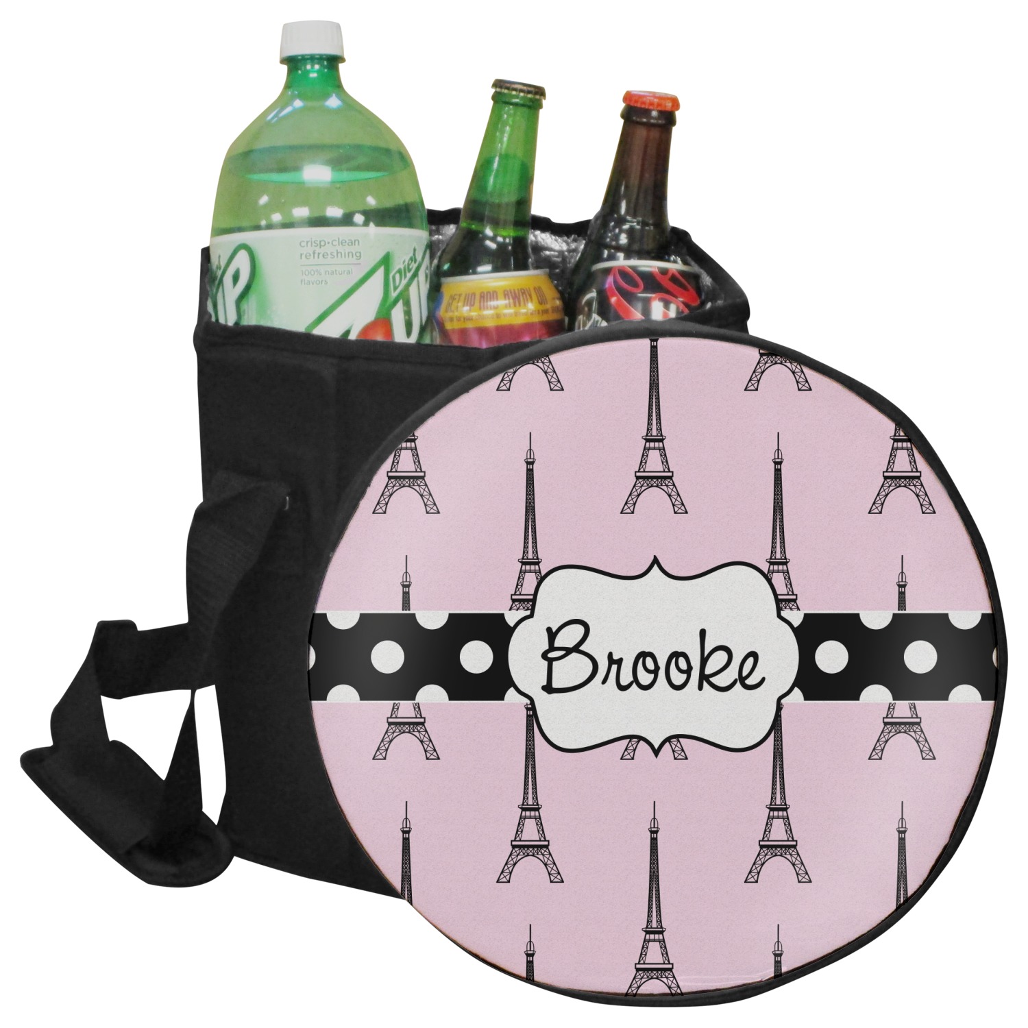 Our collapsible insulated coolers feature a unique six-sided hexagon shape, are lightweight, durable and can be turned into a seat. This cooler is fully insulated with silver foil lining to keep food and drinks hot or cold, and has a 12-quart capacity. Although this cooler collapses for easy transport, hidden inside are composition panels made of sturdy wood that give the frame strength and allow this cooler to be used as a seat. Simply sit down on the personalized cover and give your legs a break! (Maximum weight capacity of 200 pounds.)