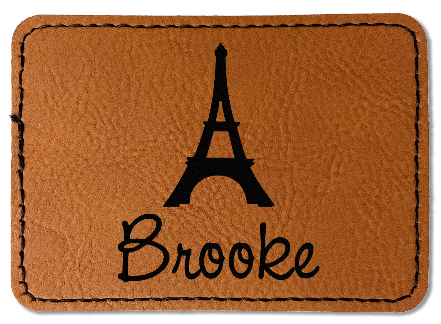 Our leather patches come in 4 different shapes - Square (3" x 3"), Round (3" x 3"), Oval (3.5" x 2.5"), Rectangle (3.5" x 2.5") and a beautiful rich brown rawhide or cognac color.