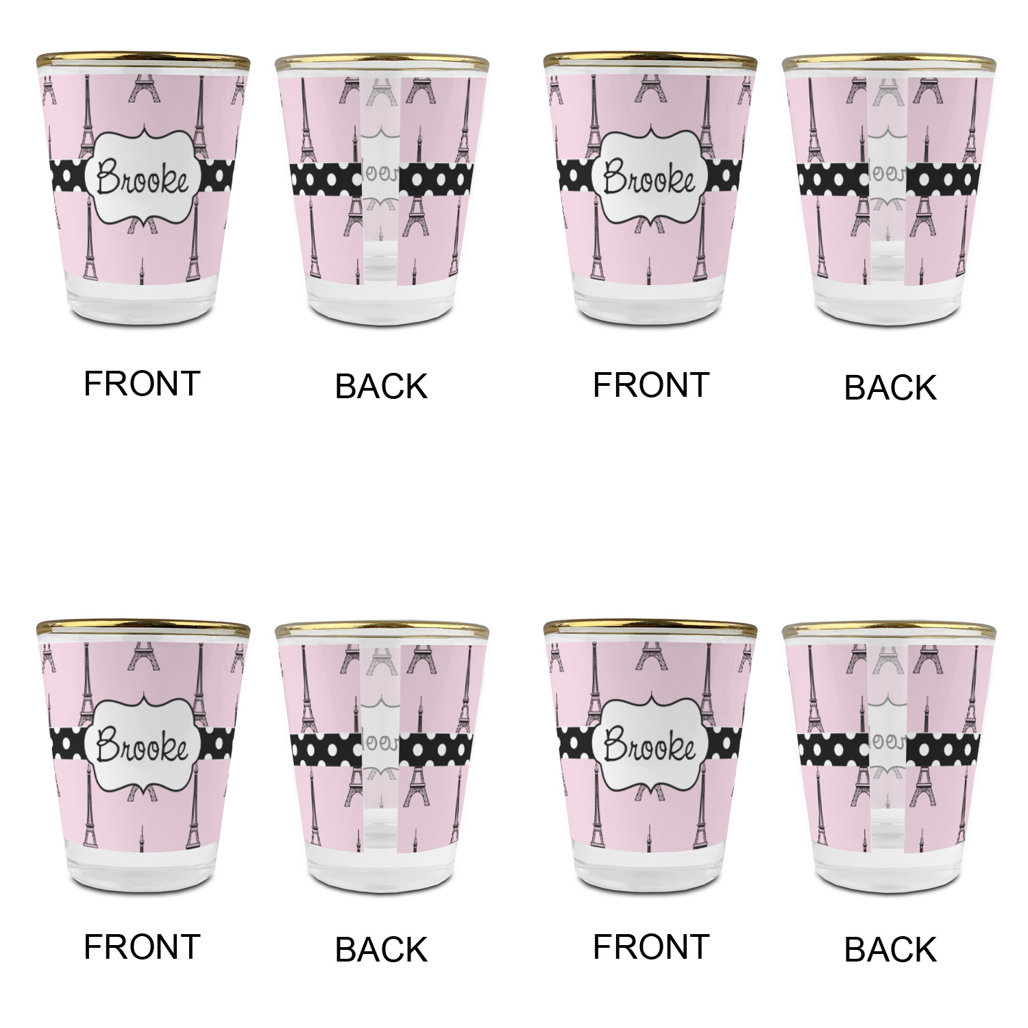 Made with frosted glass, these shot glasses are printed in full color with the design of your choice. They are a standard 1.5oz shot glass and are 2.4" tall. The print is wrapped around the shot glass in a full wrap and boldly displays your customization.