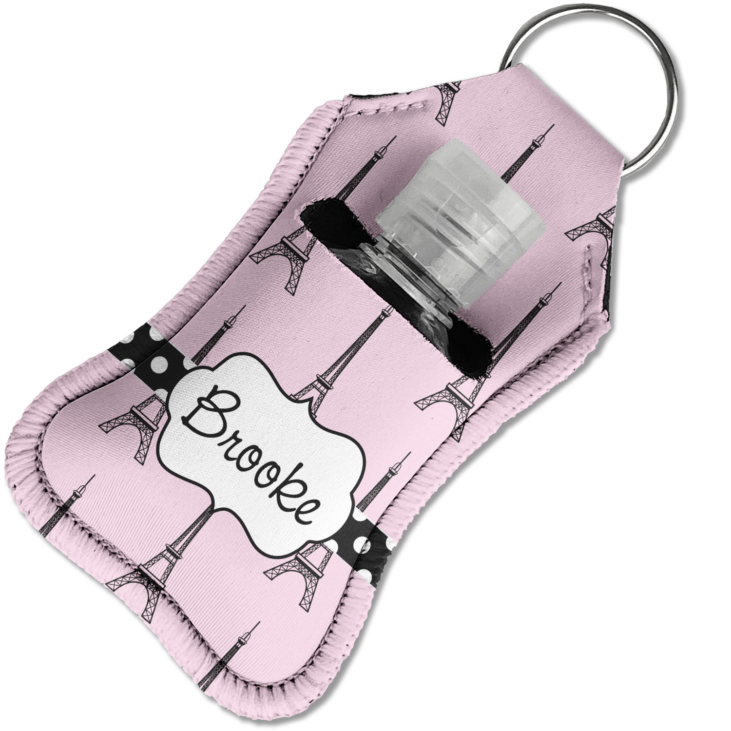 Each hand sanitizer holder comes with its own empty travel-sized, refillable hand sanitizer sure to fit snug in your customized sanitizer case! Our hand sanitizer cases are a durable, yet soft neoprene material sure to last any daily activities or travel agenda. Customize and personalize a hand sanitizer bottle holder with one of our two sizes - small (4.25" x 2.25") or large (5.5" x 2.5"). Each travel sanitizer holder comes with a keyring for attachment on bags, keys, or more!