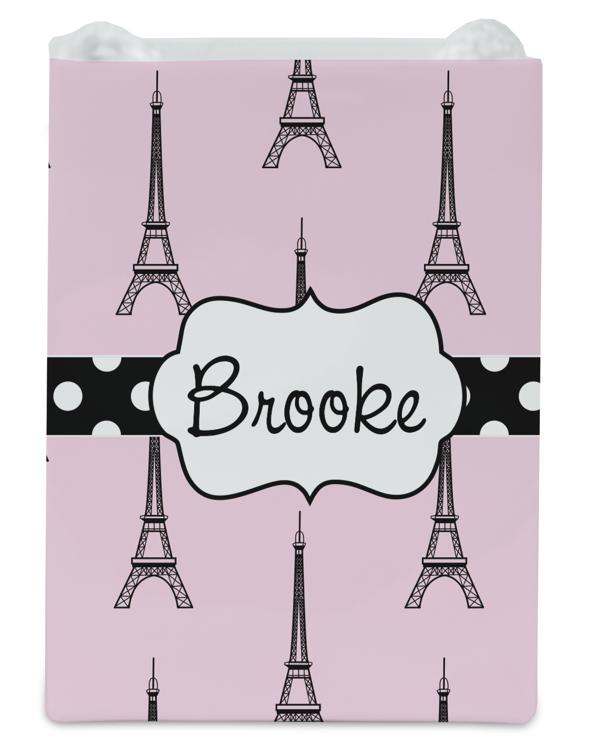 A wide black and white polka dot band adds a touch of French whimsy. The beautiful label highlights the personalization of your choice.