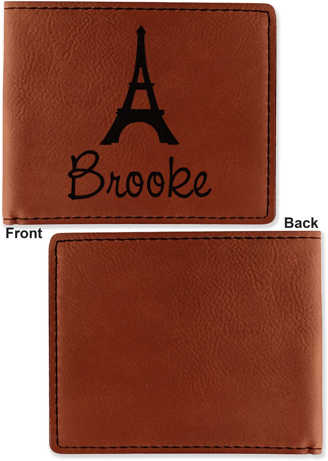 Your bifold wallet will be personalized by laser engraving, which will be a black color on the wallet. Choose a graphic, text, or monogram to personalize your wallet. There are thousands of choices in our design center.