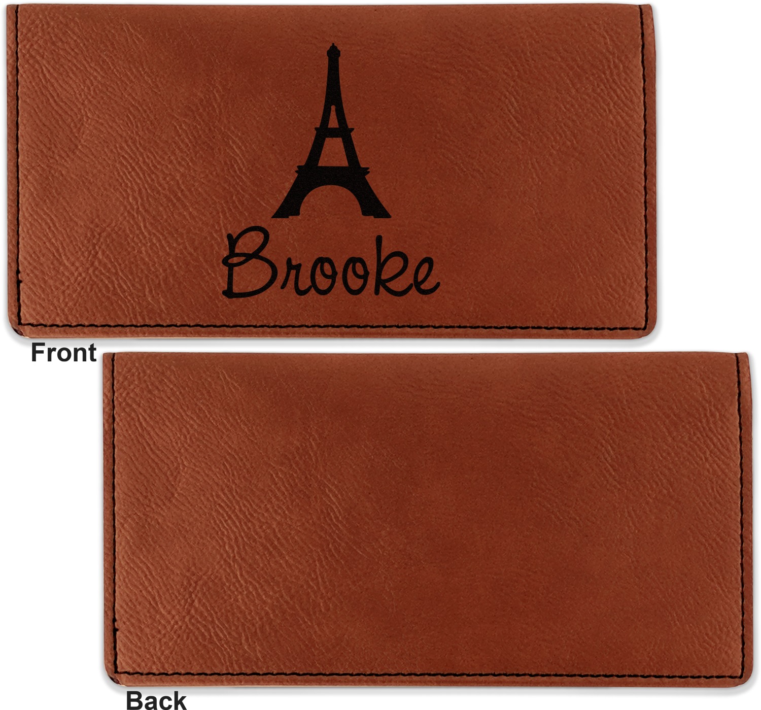 Go into our design center to start personalizing. Your checkbook cover will be laser engraved, making the graphic or text a black color. Choose a fun saying, monogram, or font to go on your checkbook cover. You have the opportunity to do it double or single sided.