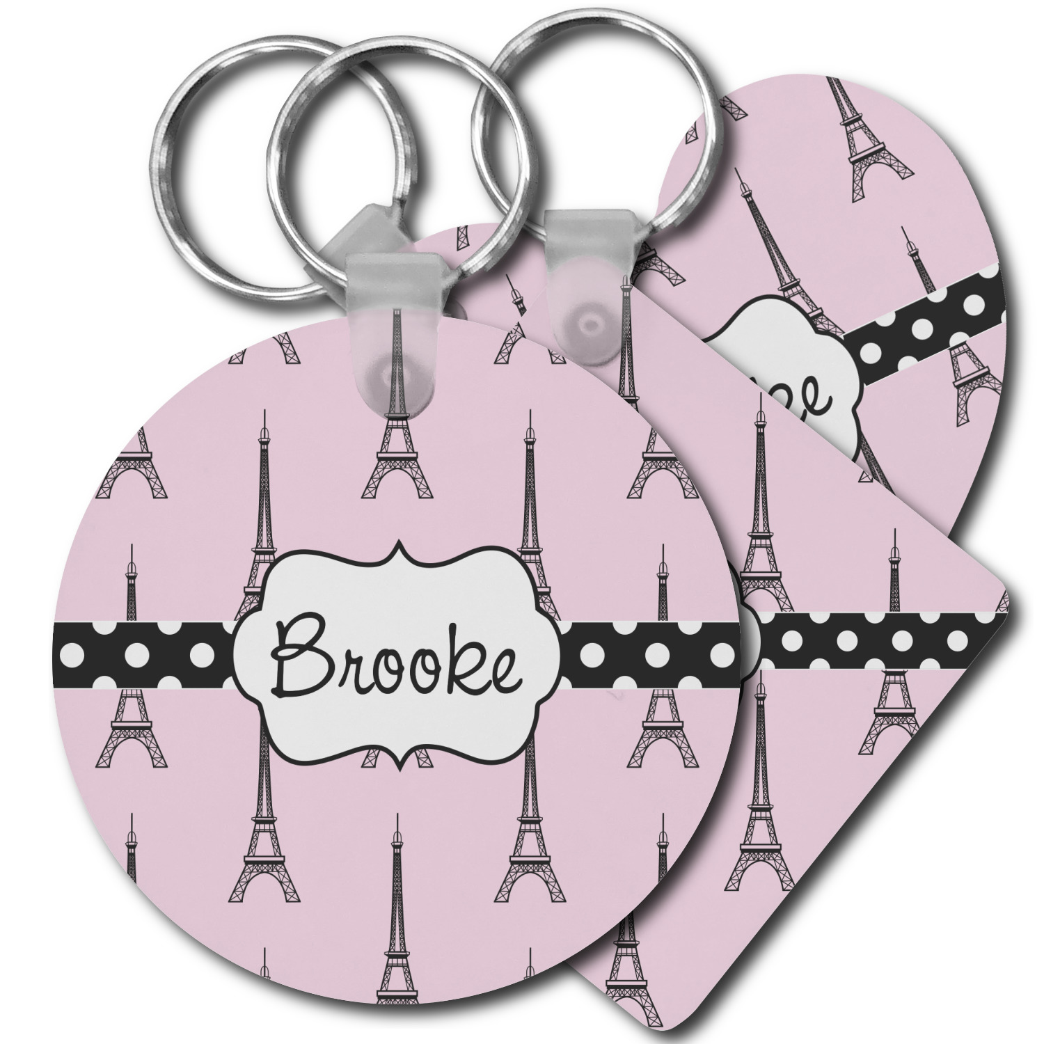Our personalized keychains attach to the included metal, split key ring with a plastic, removable snap. Since a metal ring is included with your purchase, you have the liberty to keep your keys together on the ring, with or without your unique keychain. We offer this keychain in three different shapes: circle, heart, or diamond. We print your personalized design(s) on both sides of the key chain, and the surface has a glossy, reflective finish that only emphasizes your design. Each keychain is approximately 2.25 by 2.25 inches.
