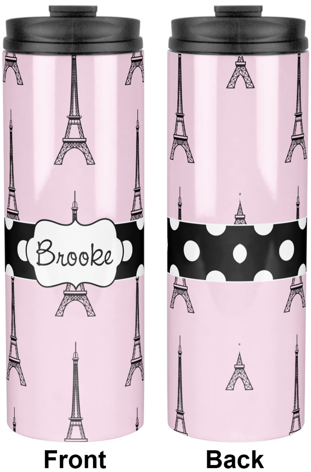A wide black and white polka dot band adds a touch of French whimsy. The beautiful label highlights the personalization of your choice.