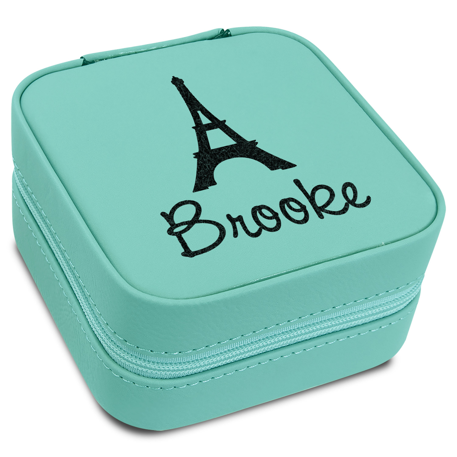 This square zippered travel jewelry box is made from leatherette and is available in four colors - classic cognac / rawhide, a beautiful teal. navy blue or pink. The tan colored soft velvet inside has compartments and hooks for all your jewelry - rings, chains, earrings, bangles etc.