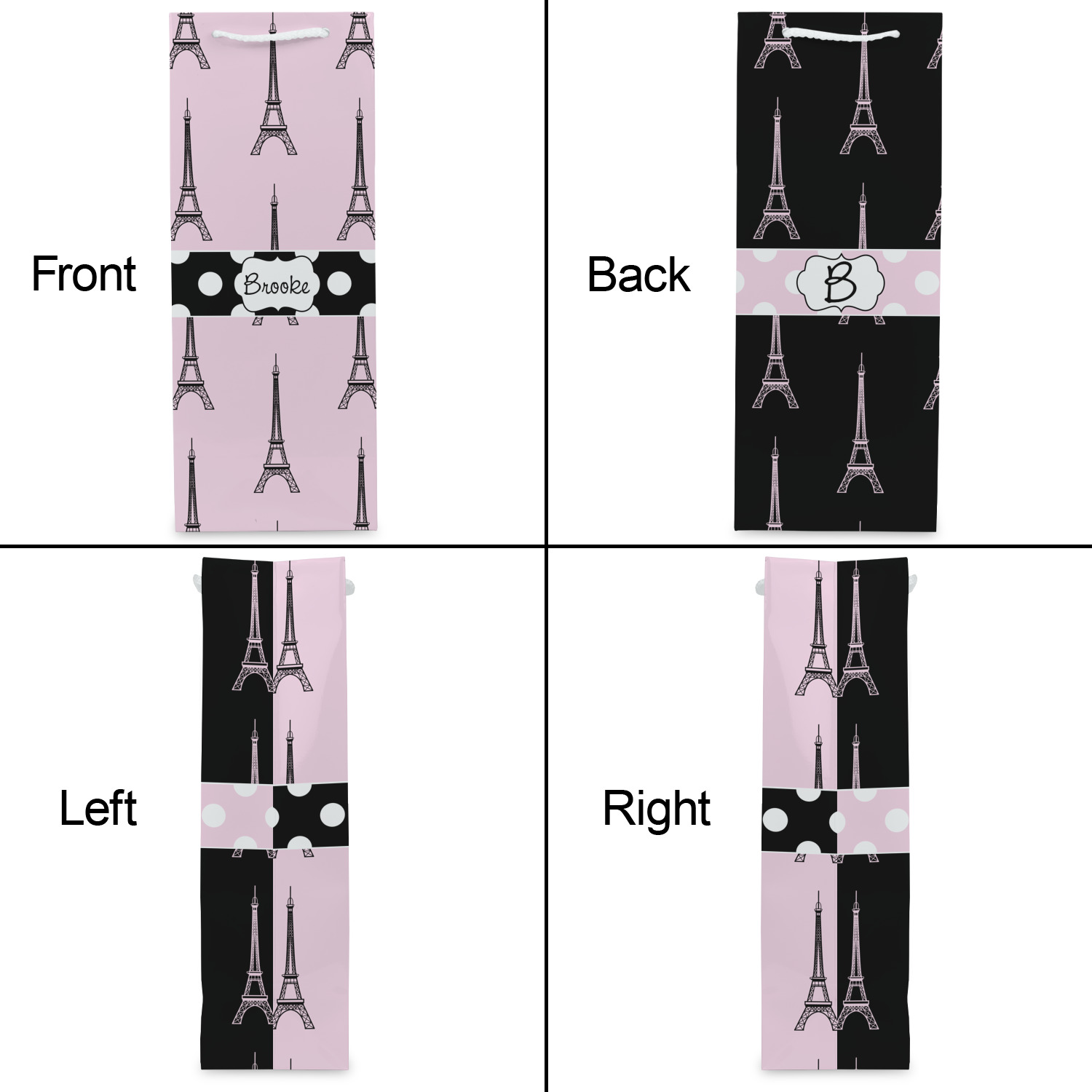 Our wine bags are printed on premium paper. The bags are then cut, scored and folded. The handles and cardstock base it attached. These custom wine bags are printed and made in the USA.