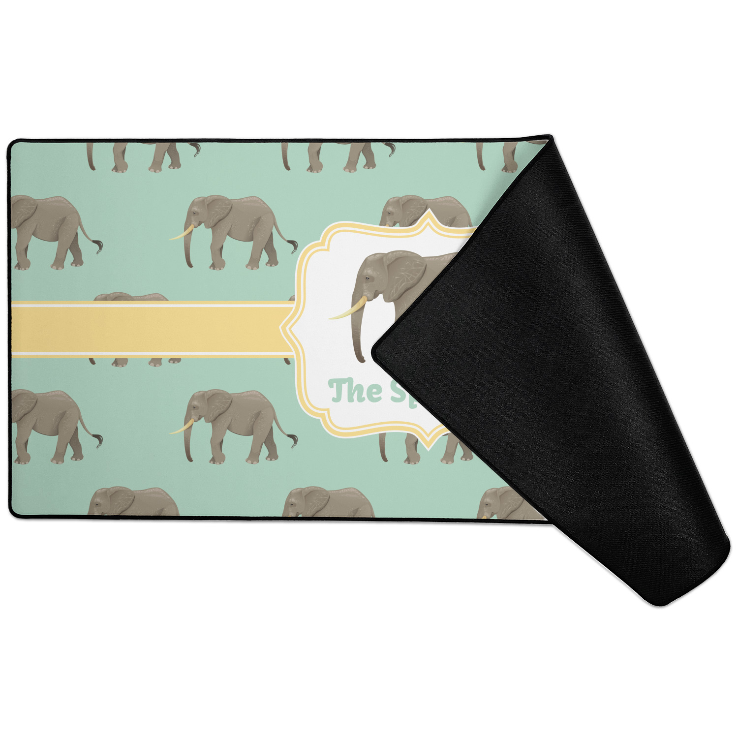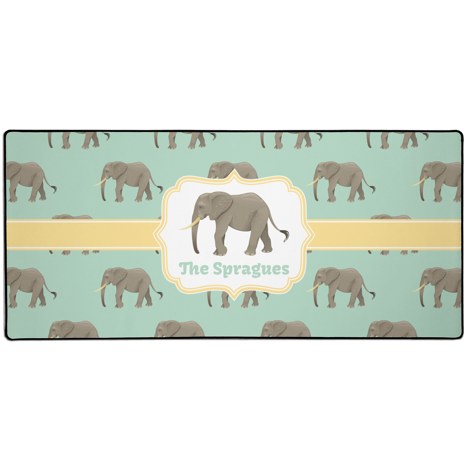 An elephant never forgets, and we hope you won't forget this Elephant design. The design shows gray, tusked elephants on a mint background with a light yellow ribbons. The center has a label with an elephant and a space for text.