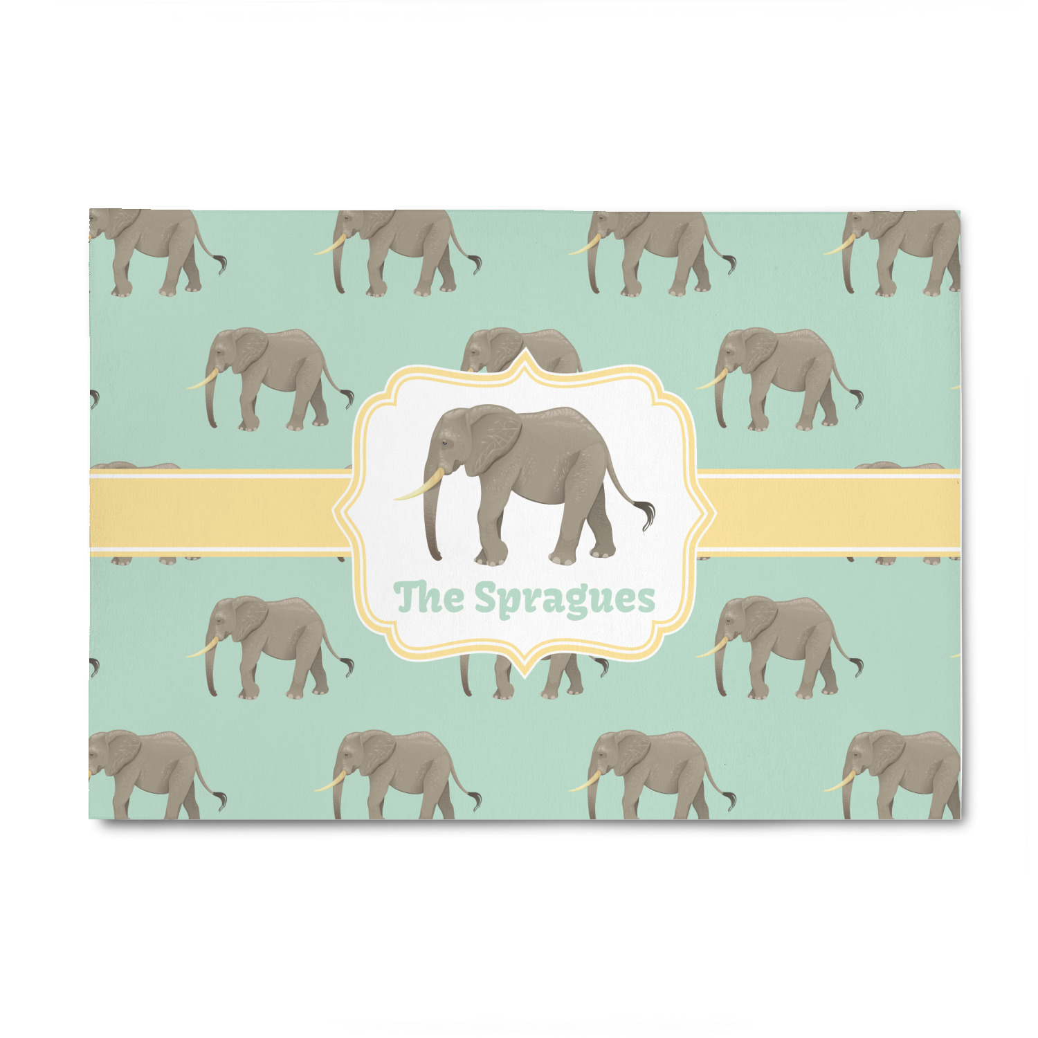 An elephant never forgets, and we hope you won't forget this Elephant design. The design shows gray, tusked elephants on a mint background with a light yellow ribbons. The center has a label with an elephant and a space for text.