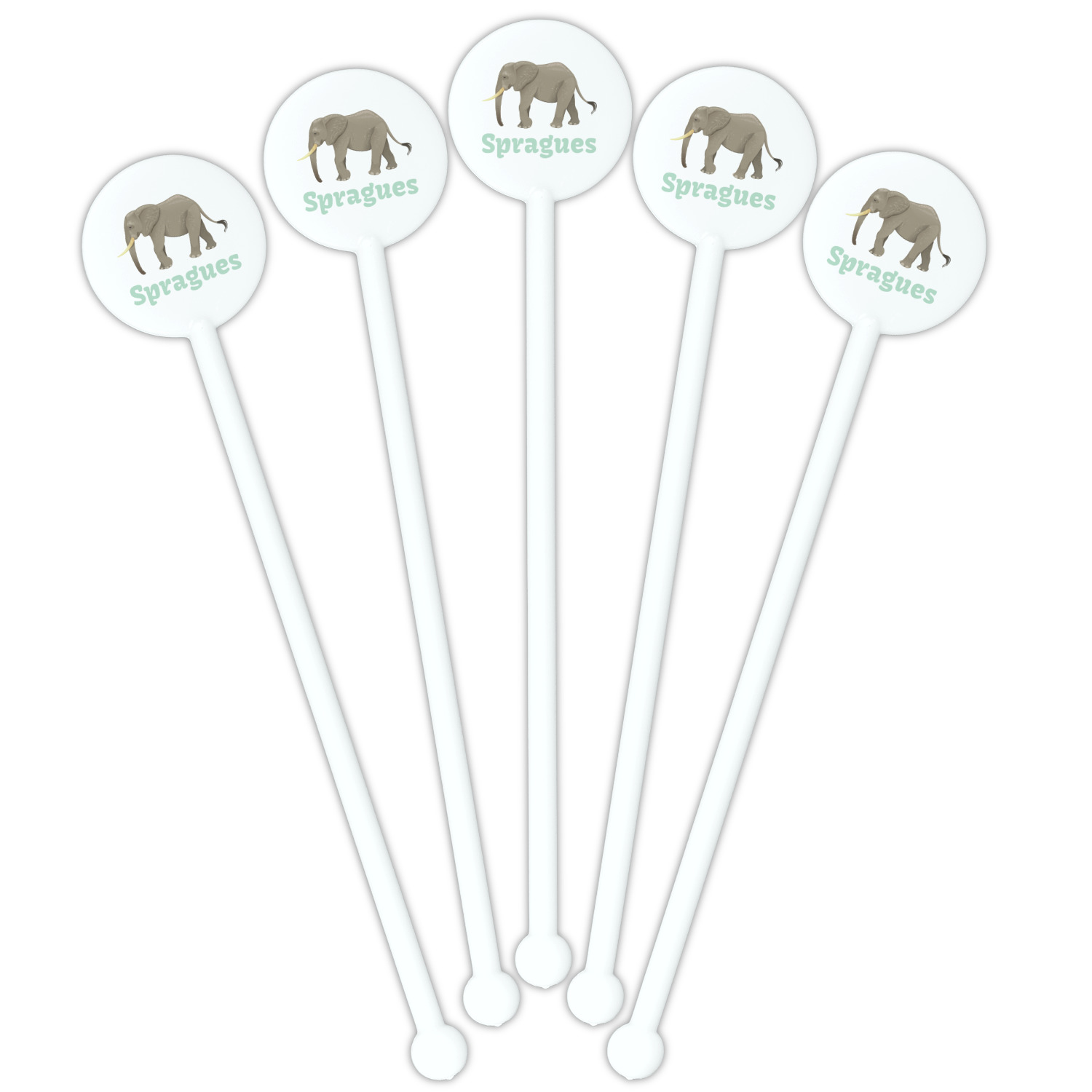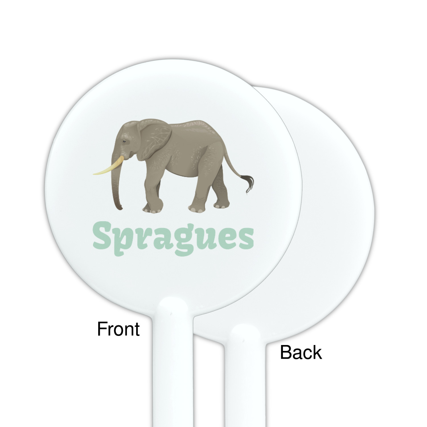 An elephant never forgets, and we hope you won't forget this Elephant design. The design shows gray, tusked elephants on a mint background with a light yellow ribbons. The center has a label with an elephant and a space for text.