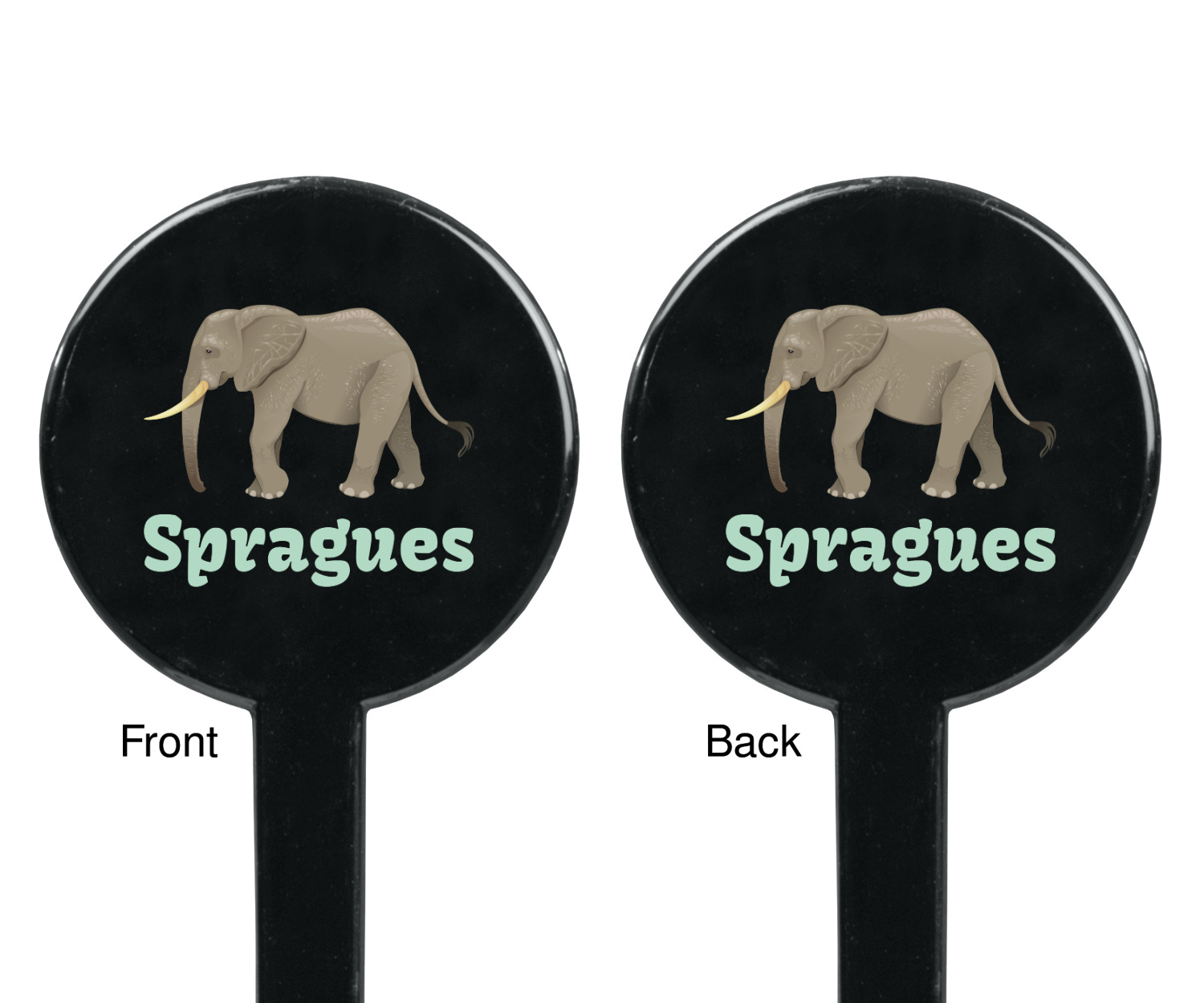 An elephant never forgets, and we hope you won't forget this Elephant design. The design shows gray, tusked elephants on a mint background with a light yellow ribbons. The center has a label with an elephant and a space for text.