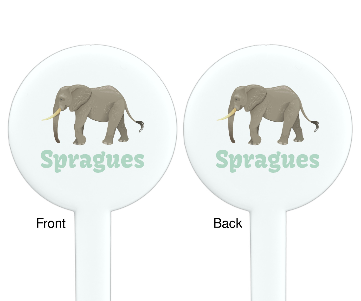 An elephant never forgets, and we hope you won't forget this Elephant design. The design shows gray, tusked elephants on a mint background with a light yellow ribbons. The center has a label with an elephant and a space for text.