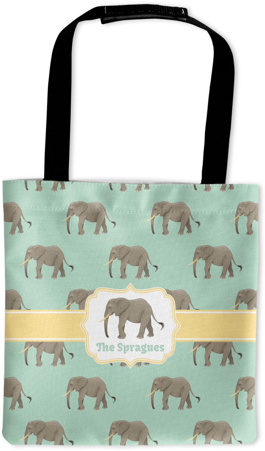An elephant never forgets, and we hope you won't forget this Elephant design. The design shows gray, tusked elephants on a mint background with a light yellow ribbons. The center has a label with an elephant and a space for text.