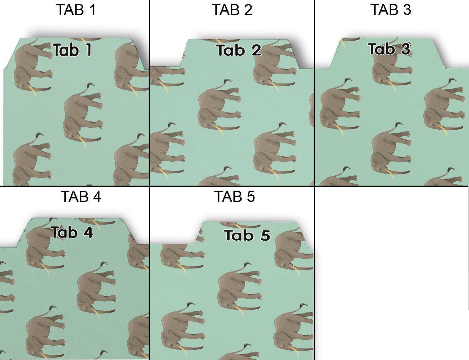 Whether you use binders at school or at work, we have designs to suit all of them. Available in 5 or 6 tab sets, you are sure to find a set to suit your needs. The back of each one is white and can be used to take notes, write vital information on, etc.