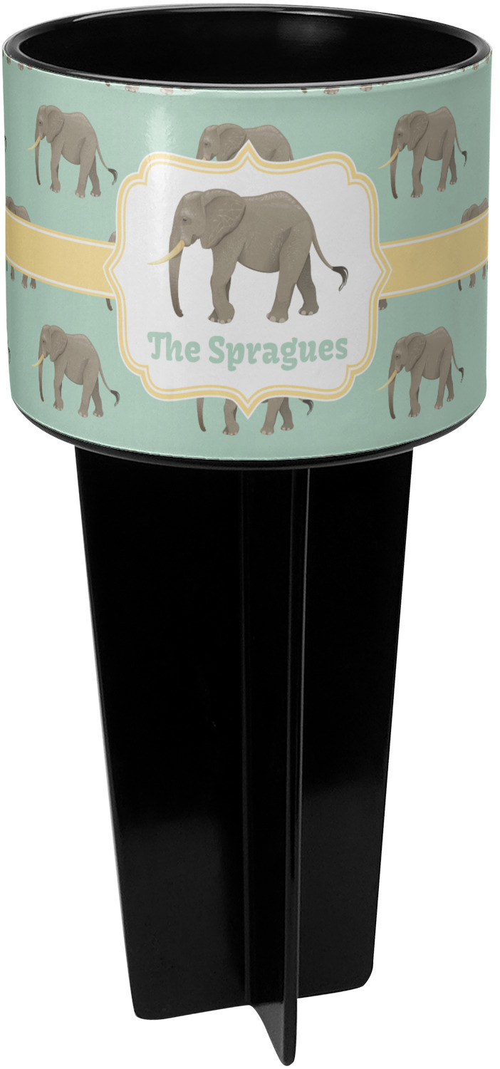 This cup holder has a large stake at its bottom that anchors it to the sand or ground below, while the cup holder rests above the stake. The entire drink holder is made of durable plastic and displays your customization around the cup holder portion. We sell these personalized beach spikers in two different colors: black and white.