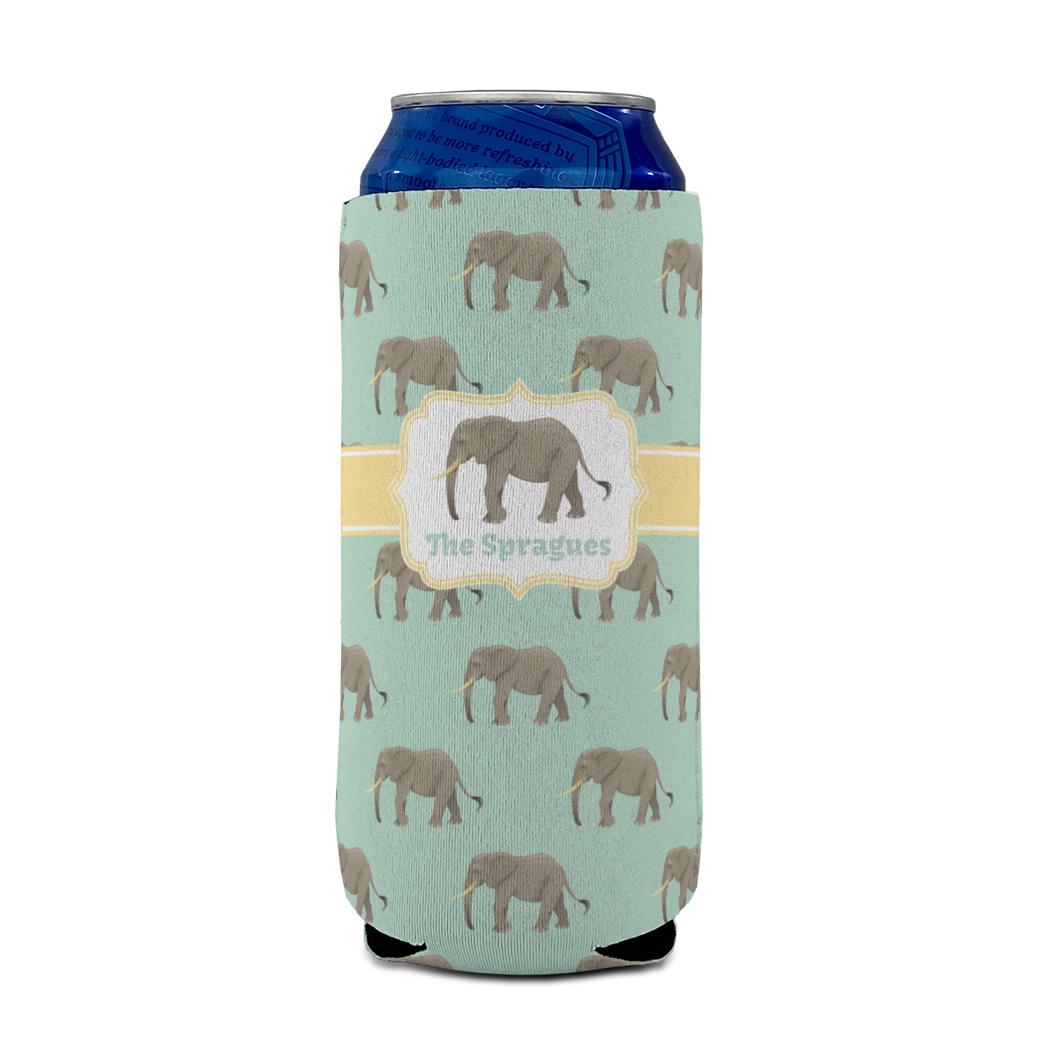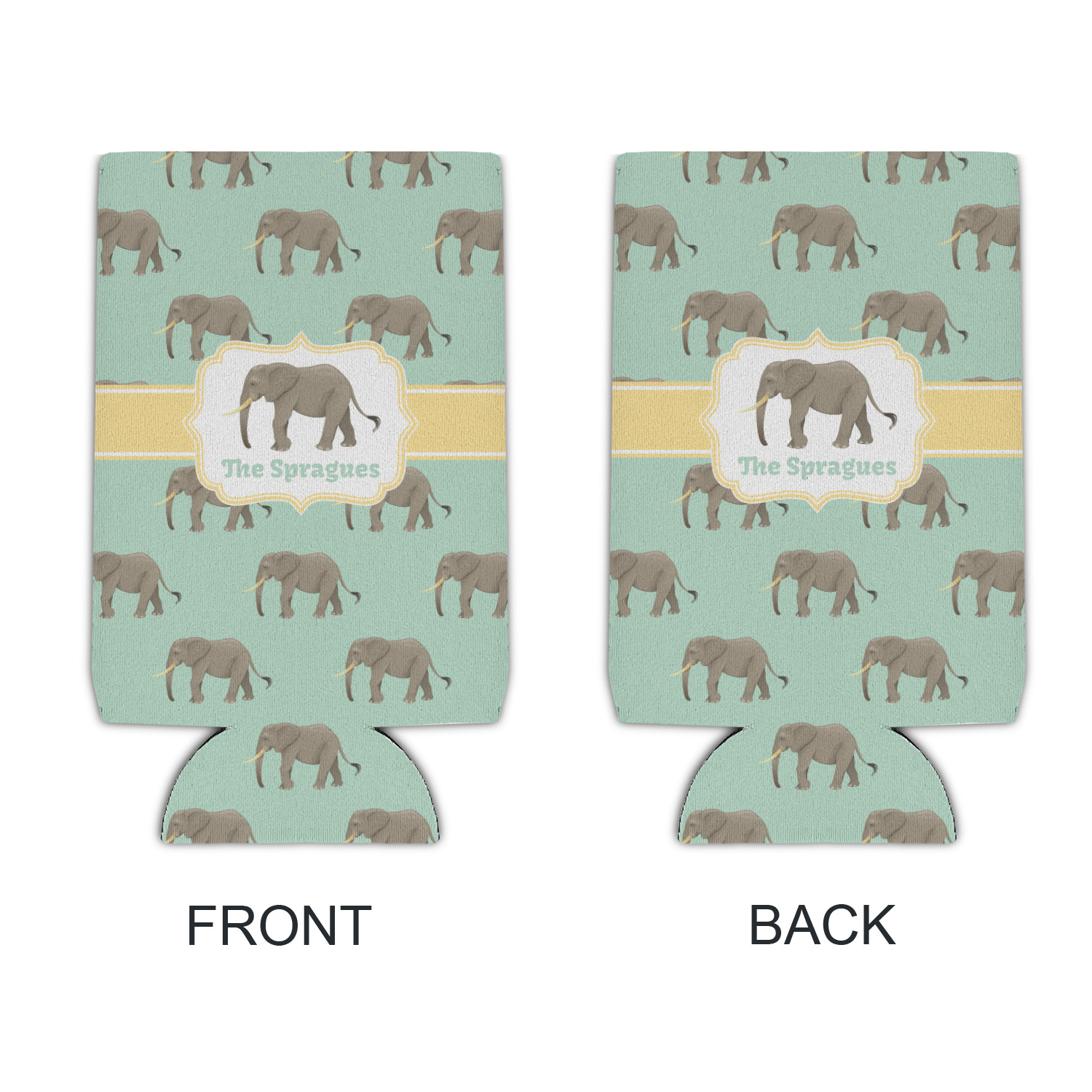 An elephant never forgets, and we hope you won't forget this Elephant design. The design shows gray, tusked elephants on a mint background with a light yellow ribbons. The center has a label with an elephant and a space for text.