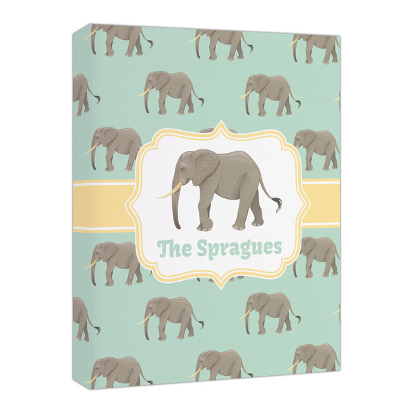 An elephant never forgets, and we hope you won't forget this Elephant design. The design shows gray, tusked elephants on a mint background with a light yellow ribbons. The center has a label with an elephant and a space for text.