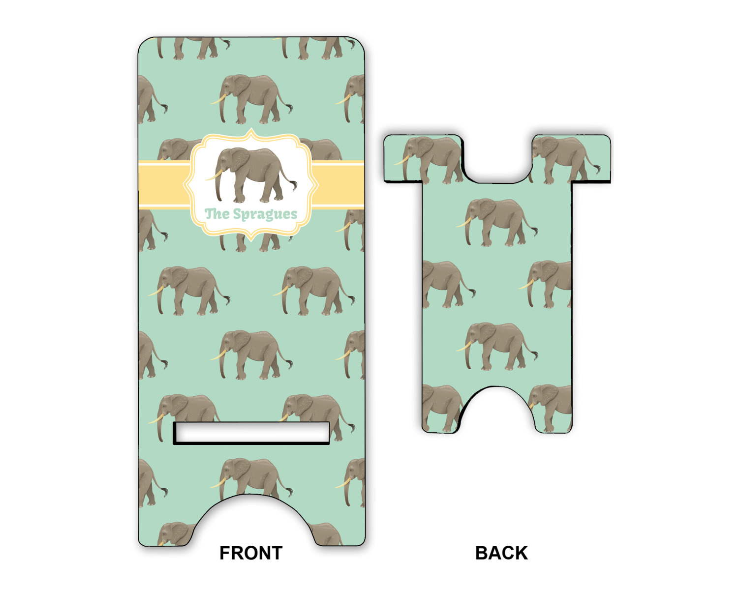 An elephant never forgets, and we hope you won't forget this Elephant design. The design shows gray, tusked elephants on a mint background with a light yellow ribbons. The center has a label with an elephant and a space for text.