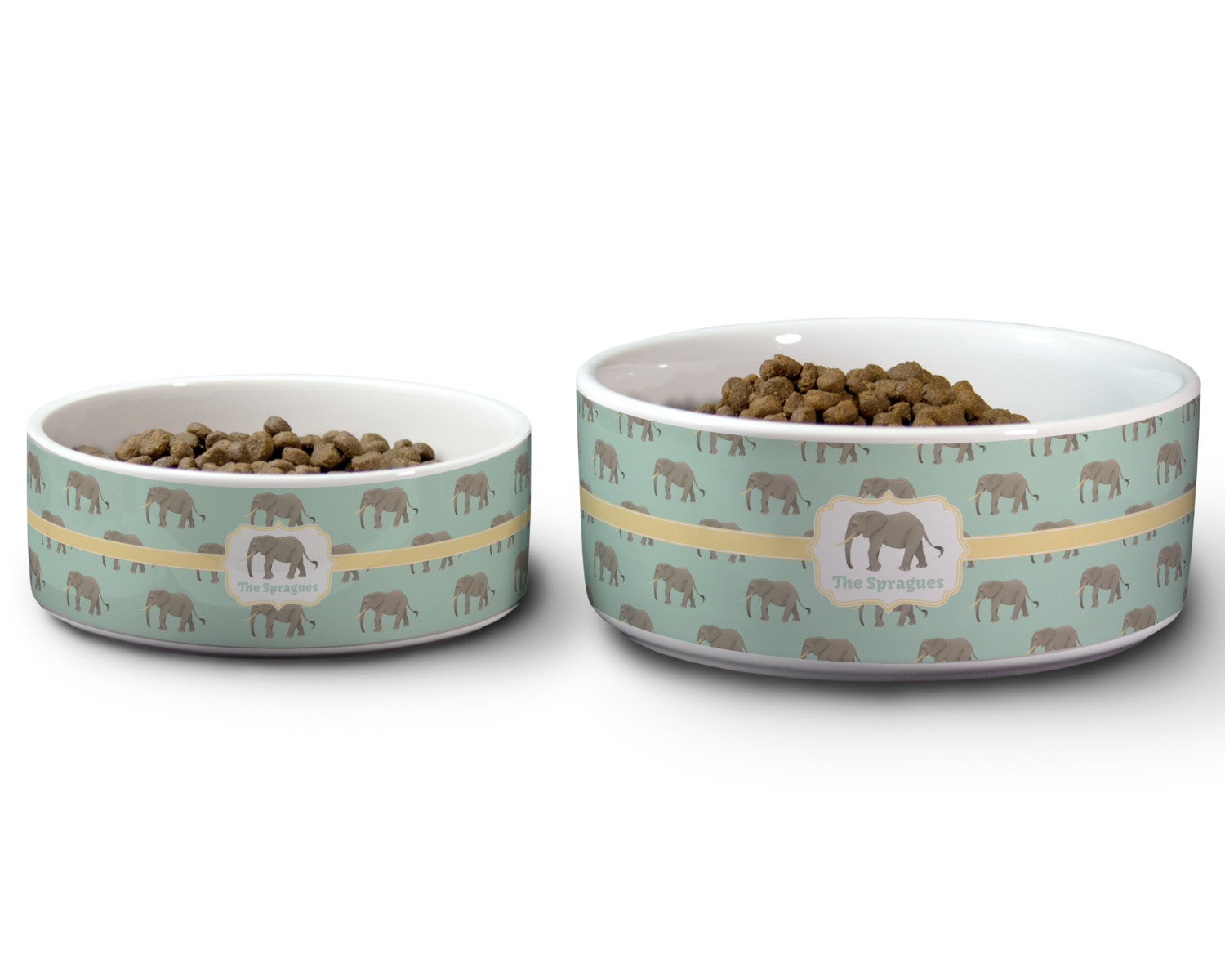 We carry these custom dog bowls in two available sizes: medium and large.The medium is 6 inches in diameter and 2.5 inches tall, and can therefore suit pets who eat up to 2.5 cups of food per meal. The large pet bowl is 7 inches in diameter and 3 inches tall, and suits pets who require up to 4.5 cups of food per meal.