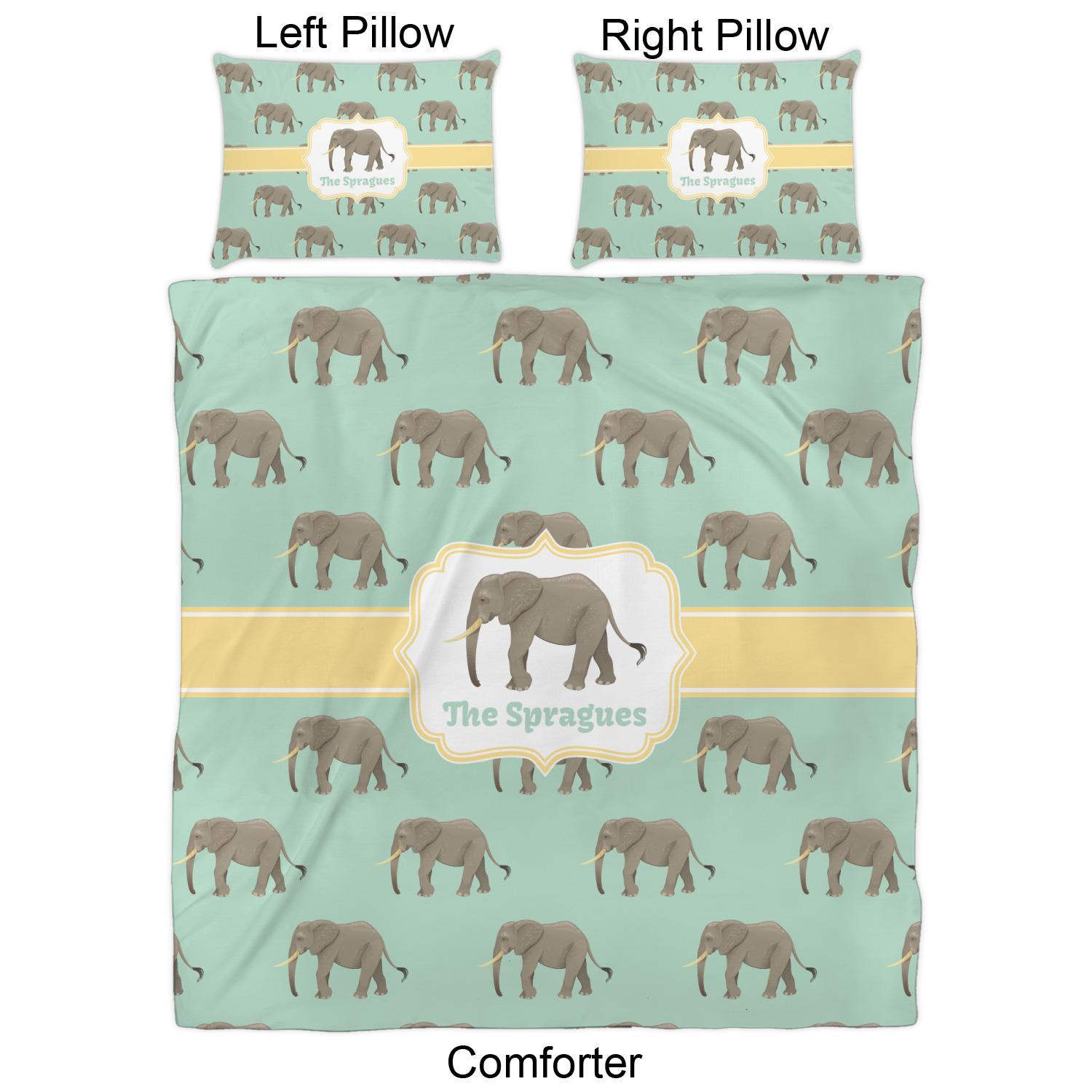 We have hundreds of different design templates for you to choose from Each design can be customized to your exact specifications. Not only can you customize the comforter, but you can also customize each pillow sham e.g. for a queen comforter set you have have Mr & Mrs pillow shams with the last name on comforter.