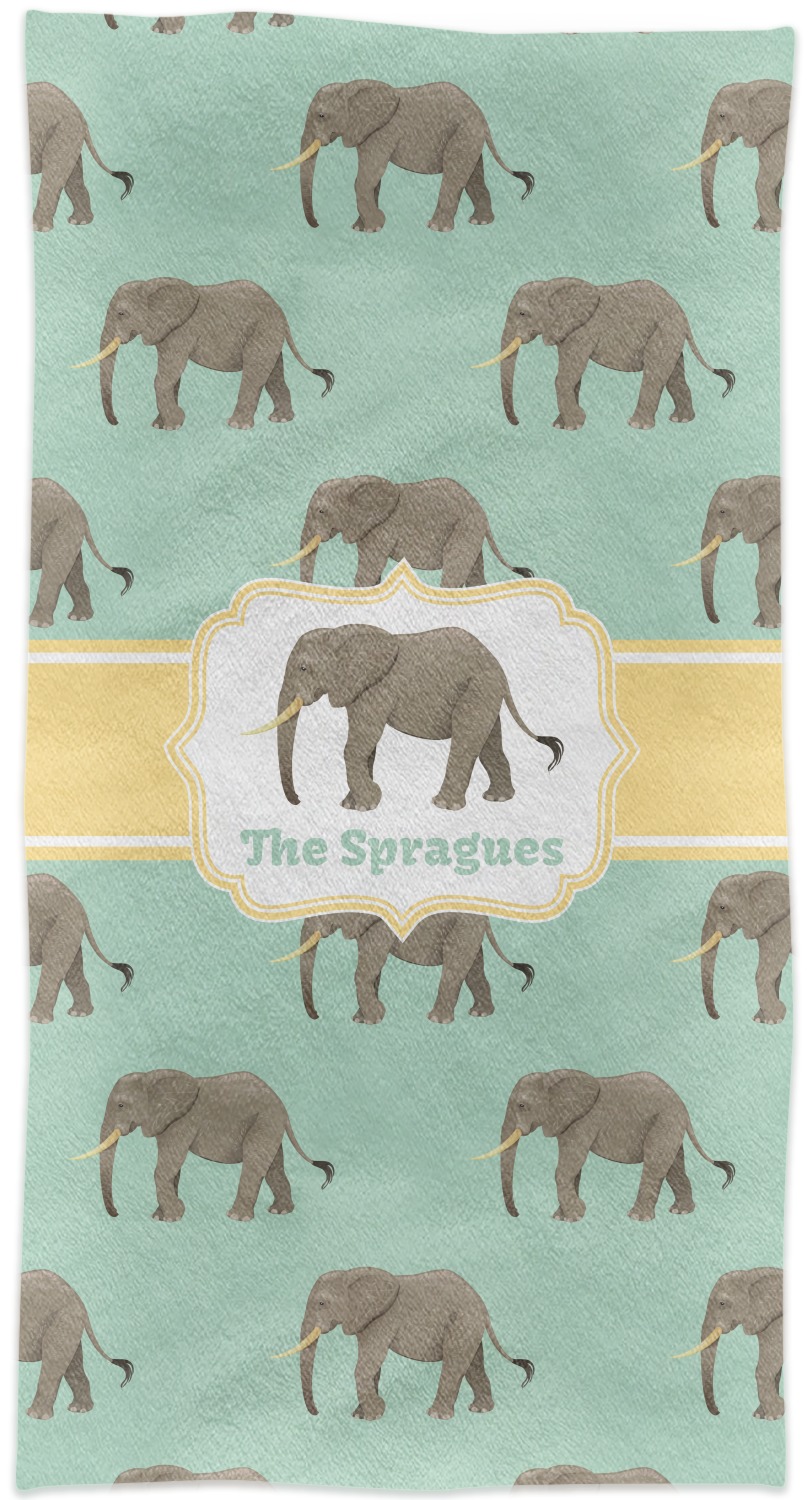 An elephant never forgets, and we hope you won't forget this Elephant design. The design shows gray, tusked elephants on a mint background with a light yellow ribbons. The center has a label with an elephant and a space for text.